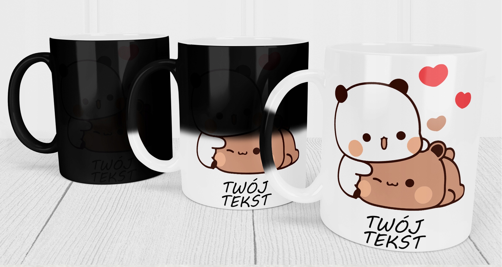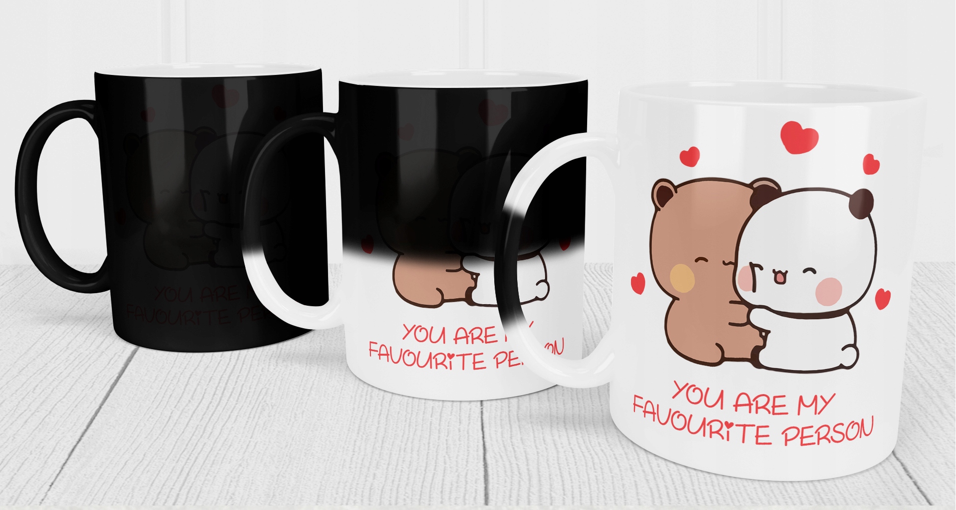 Чарівна кухоль - чорного кольору, коли її обливають окропом, стає білою та відкриває відбиток, зроблений на кухлі.