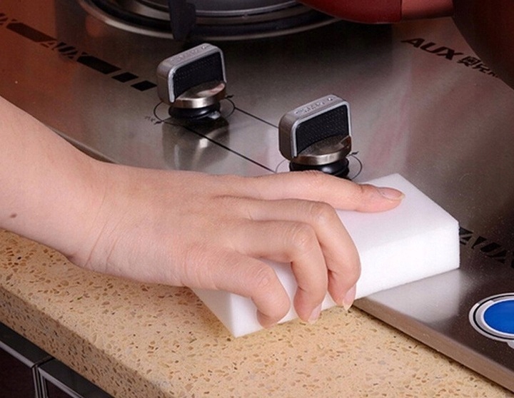 Чарівна губка виготовлена з матеріалу, який називається меламінова піна. Меламін — це інноваційний продукт, який використовується в аксесуарах для чищення. Цей матеріалдуже економічний і може використовуватися багато разів без додавання миючих засобів, все що вам потрібно це трохи води .