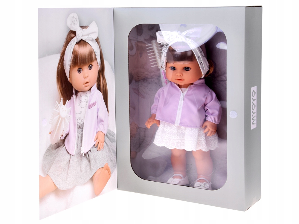 Jaśminka — це чарівна лялька з довгим красивим волоссям, яке можна розчісувати та укладати за допомогою щітки, що входить у комплект. На ній елегантна біла сукня з мереживною обробкою та модний бузковий бомбер, який надає їй сучасного вигляду. Вона носить стильну пов’язку з бантом і білі туфельки з бантами на ніжках.