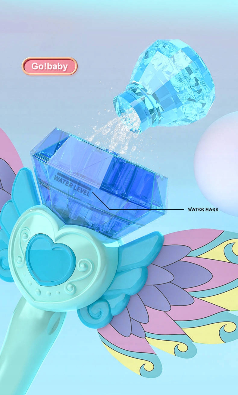 Паличка постачається з 2 віялами, прикріпленими до палички. Коли ви натискаєте елемент серця, віяла набирають швидкість і злітають угору на кілька метрів, утворюючи величезну кількість бульбашок. Паличка живиться від батарейки, яка входить в комплект.