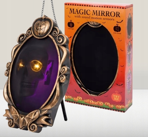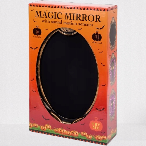 Чарівне дзеркало - це ефектний спосіб миттєво перетворити ваш інтер'єр в атмосферу Хелловіну! Це кумедна та унікальна прикраса, яка здивує кожного – просто пройдіть повз, і дзеркало активує світло та звук, представляючи жахливе зображення.