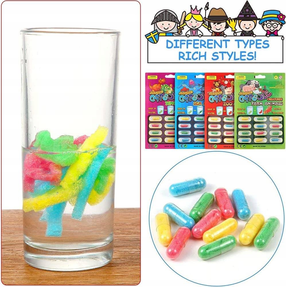 ⭐ Ви коли -небудь уявляли, як магічні істоти витягуються з планшетів? Тепер ви можете це побачити завдяки магічним капсулам, що ростуть у воді! Цей набір містить 12 магічних капсул, які після розміщення у воді розвиваються та вилуплюють різні тварини у вигляді м'яких губки. Це прекрасний спосіб для дивовижного та цікавого часу для дітей. Ці магічні капсули, безумовно, здивують і розважають вашу дитину! Весело легко і просте в трьох кроках - просто киньте капсулу у воду, а потім спостерігайте за тим, як тварини вилуплюються з ваших очей.
