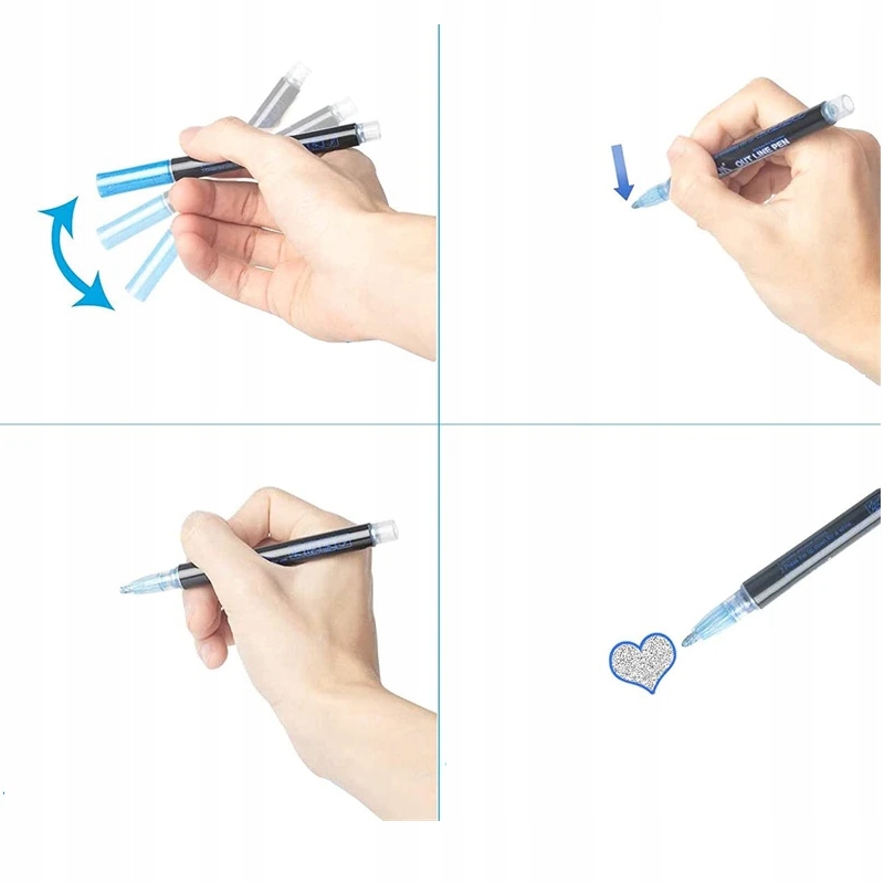 - Чарівний ефект подвійної лінії - Ручки мають спеціальне чорнило, яке дозволяє писати металевою срібною лінією з кольоровим контуром. Завдяки цій унікальній функції діти будуть виділятися серед однолітків.