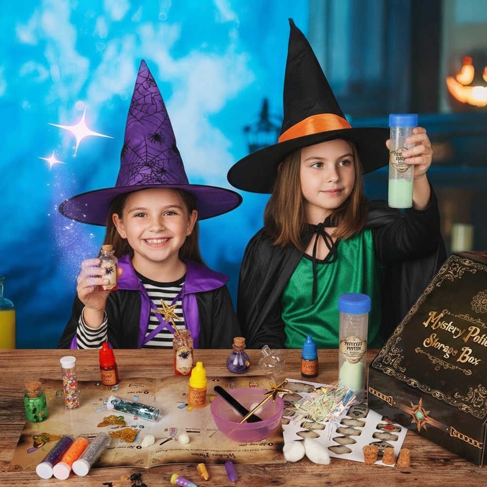 Наш набір чарівних зілля для дітей дозволяє малюкам варити зілля, як чарівники, створюючи святкову атмосферу. Це ідеальний подарунок для друзів і дітей від 6, 7, 8, 9, 10, 11 років і старше. Цей чарівний набір заохочує вашу дитину відійти від відеоігор, відпочити з родиною та друзями та вирушити у чарівну подорож світом чарівництва!