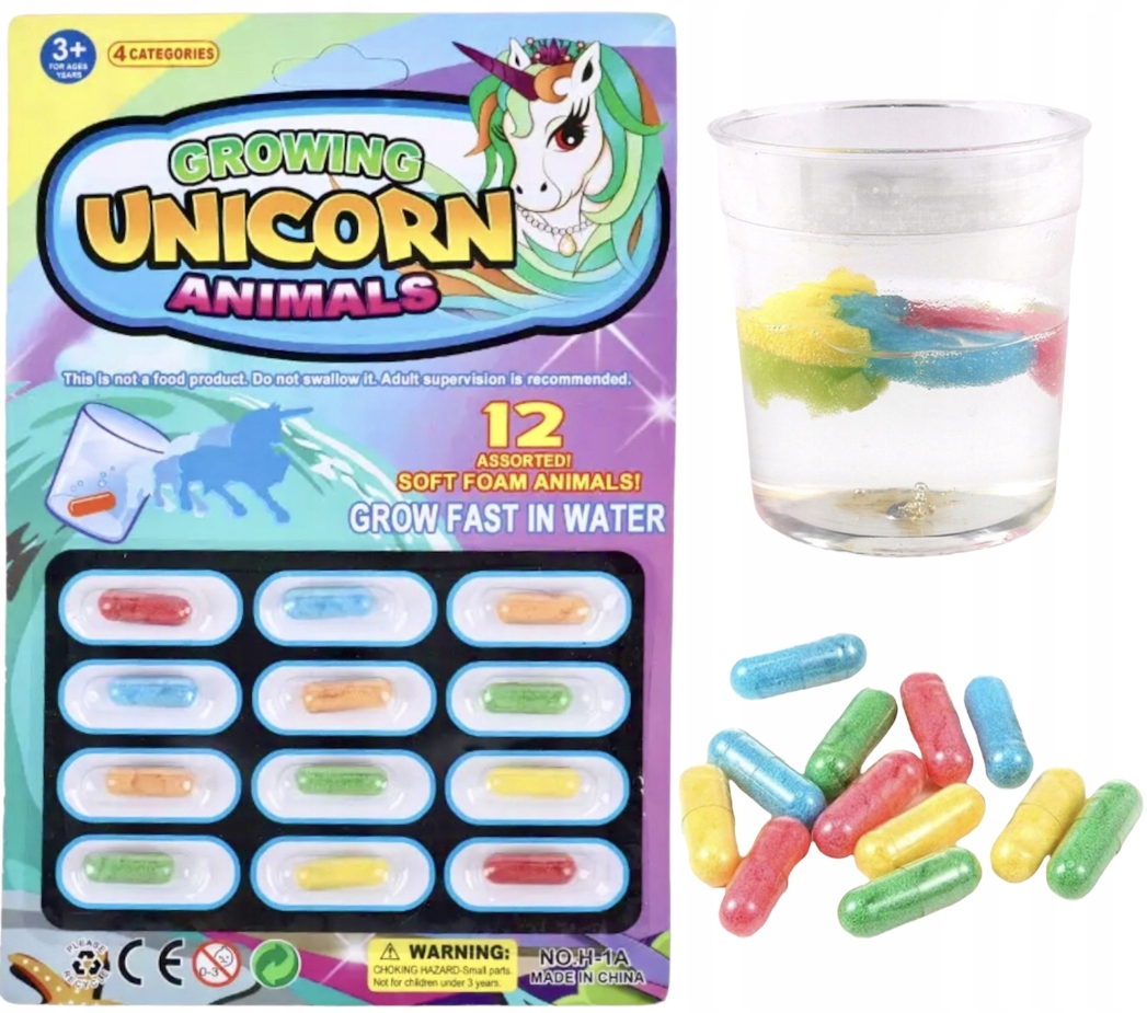 Інструкції: опустіть капсулу в теплу або холодну воду та спостерігайте, як капсула тане, а ваш вихованець росте.