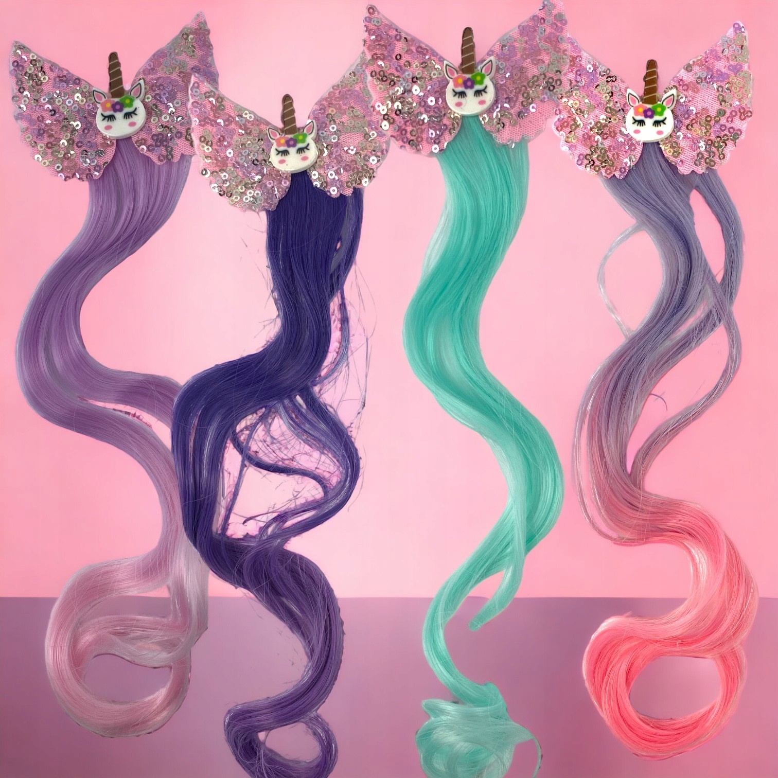Набір із металевих і красиво мерехтливих крил + райдужна та кольорова спідниця-пачка + мерехтлива пов’язка на голову з мерехтливим металевим рогом + браслет з єдинорога + шпилька з пасмом веселкового волосся + кришталеві наклейки для обличчя.