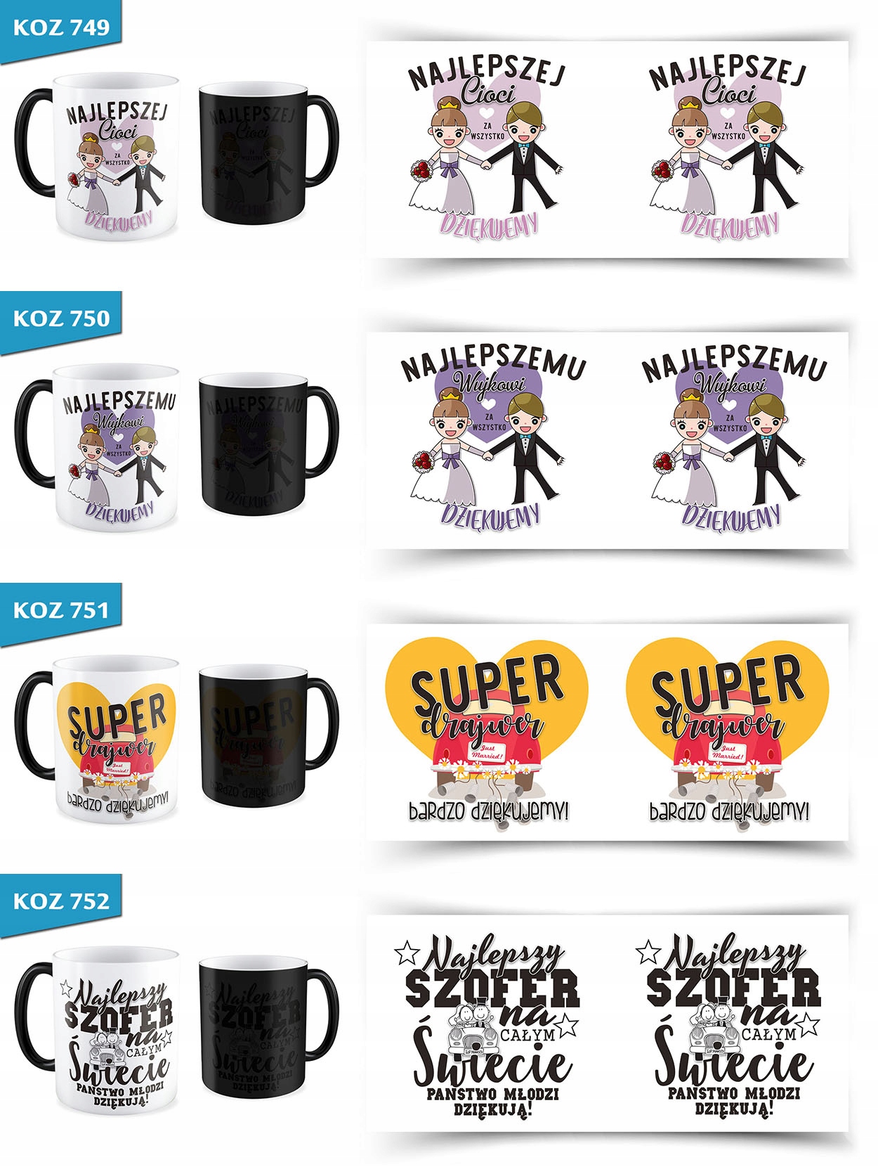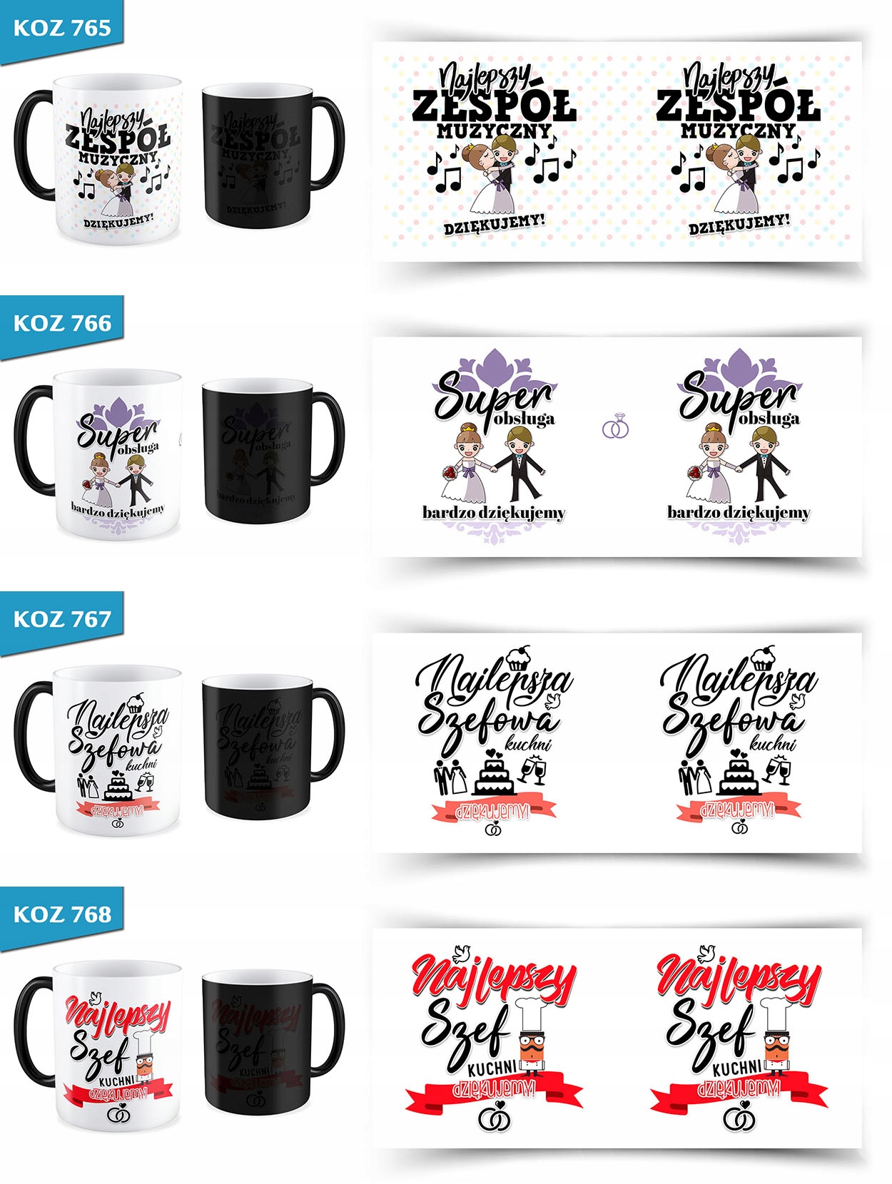 Після наливання гарячої рідини на кухоль на кухлі поступово з’являється вибране зображення, яке зазвичай покривається чорним кольором. Після охолодження налитої рідини чашка знову стає чорною. Графіка покрита приблизно на 90%, що є одним із найкращих параметрів на ринку.