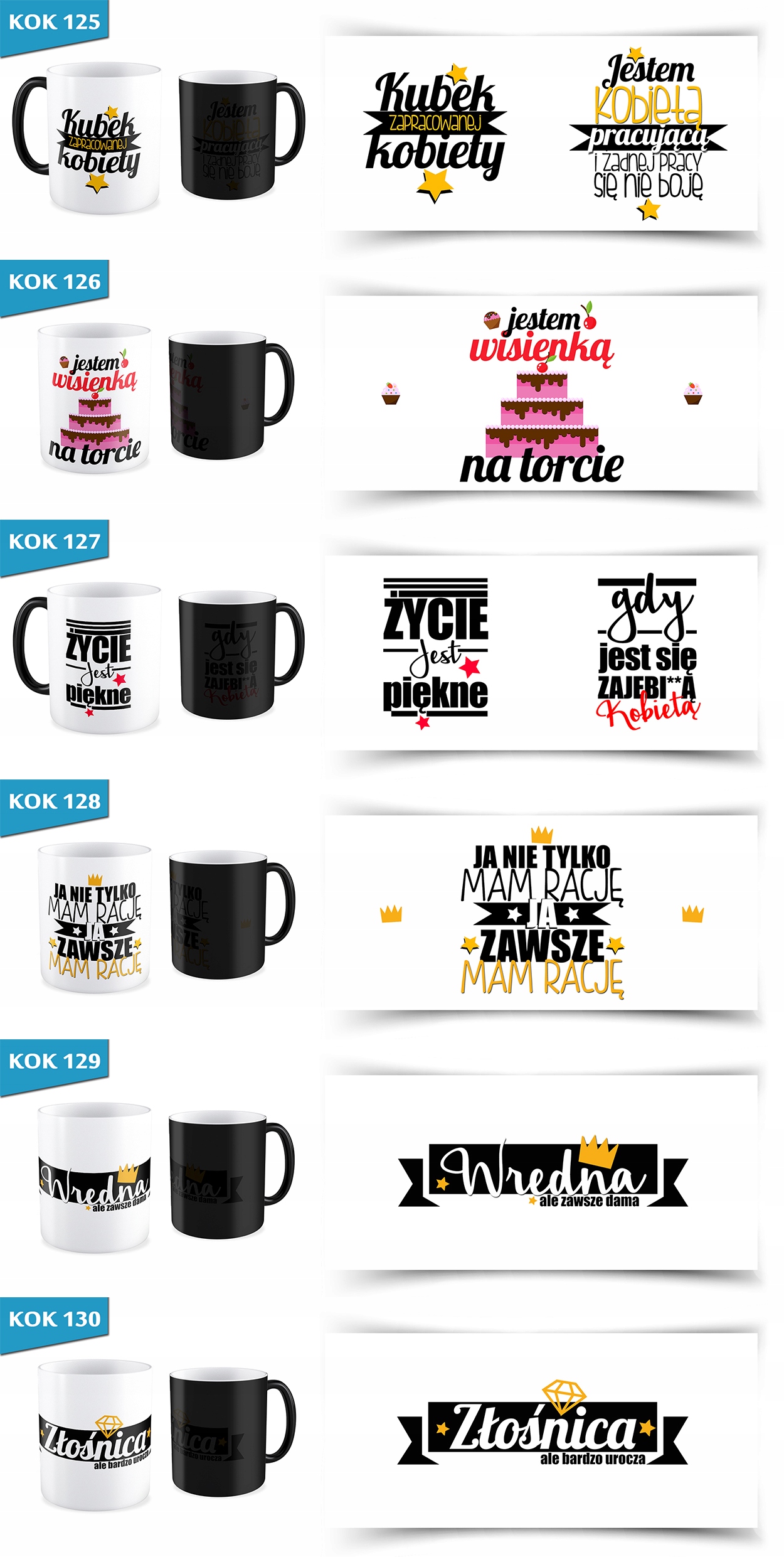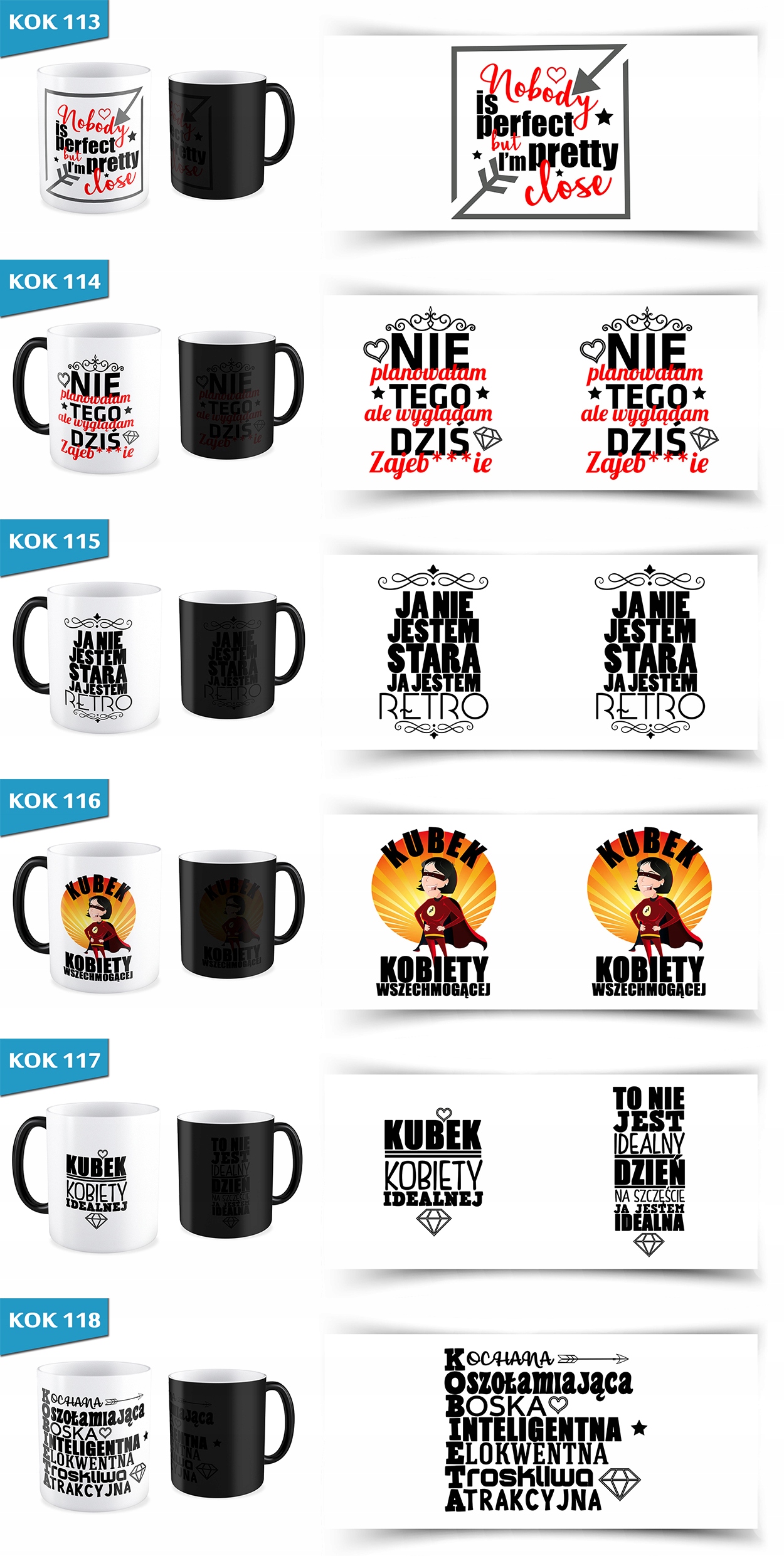Після затоплення гарячою рідиною на кухлі з'являється поступово вибрана графіка, яка в його звичайному стані покрита чорним кольором. Після охолодження затопленої рідини кружок знову стає чорним. Графіка охоплена приблизно 90%, це один з кращих параметрів, доступних на ринку.