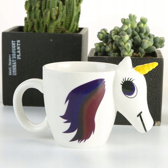 Чудова чашка з єдинорогом. Його райдужна грива під впливом тепла набуває яскравого кольору і стає ще більш приємною для очей. Ця кухоль — чудовий спосіб скрасити свій день зранку та надати йому позитивної магії. Наповніть кухоль ароматною кавою, чаєм або гарячим какао, щоб насолодитися видом милого єдинорога з райдужною гривою. День, який починається так, прожене ваш поганий настрій і темні хмари, що збираються над вами.
