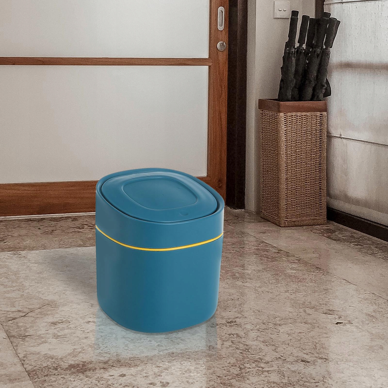 Чарівний робочий стіл домогосподарства сміттєвого сміття поруч із синім