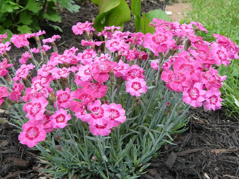 Гвоздики — це різнокольорові крихітні квіти висотою до 20 см із синьо-зеленим листям і стеблами, які створюють «килим» із їхніх квітів. Сорт «Magic» має крихітні красиві рожеві квіти, які розпускаються в травні та гарно виглядають у рокаріях або на будинках.