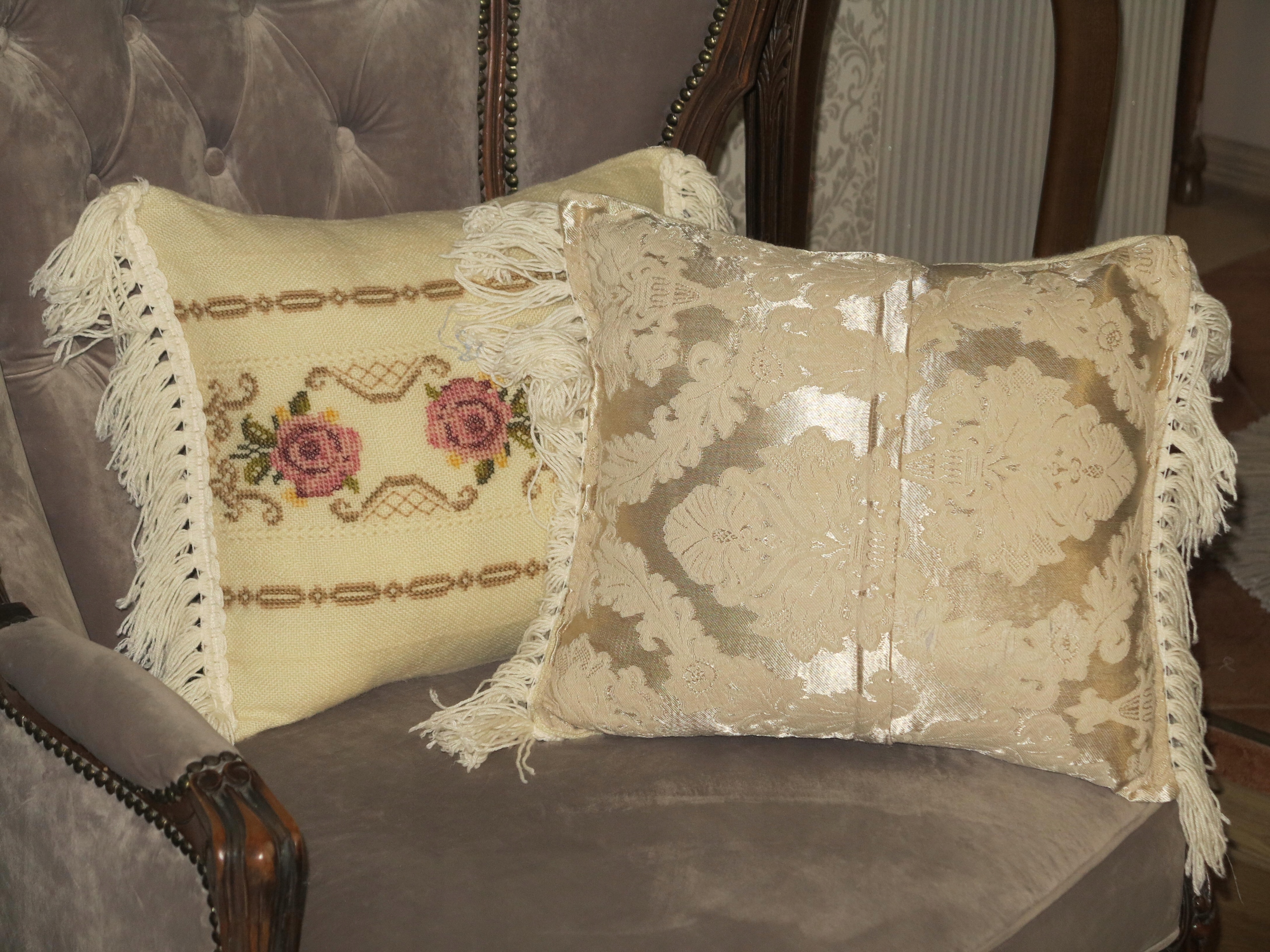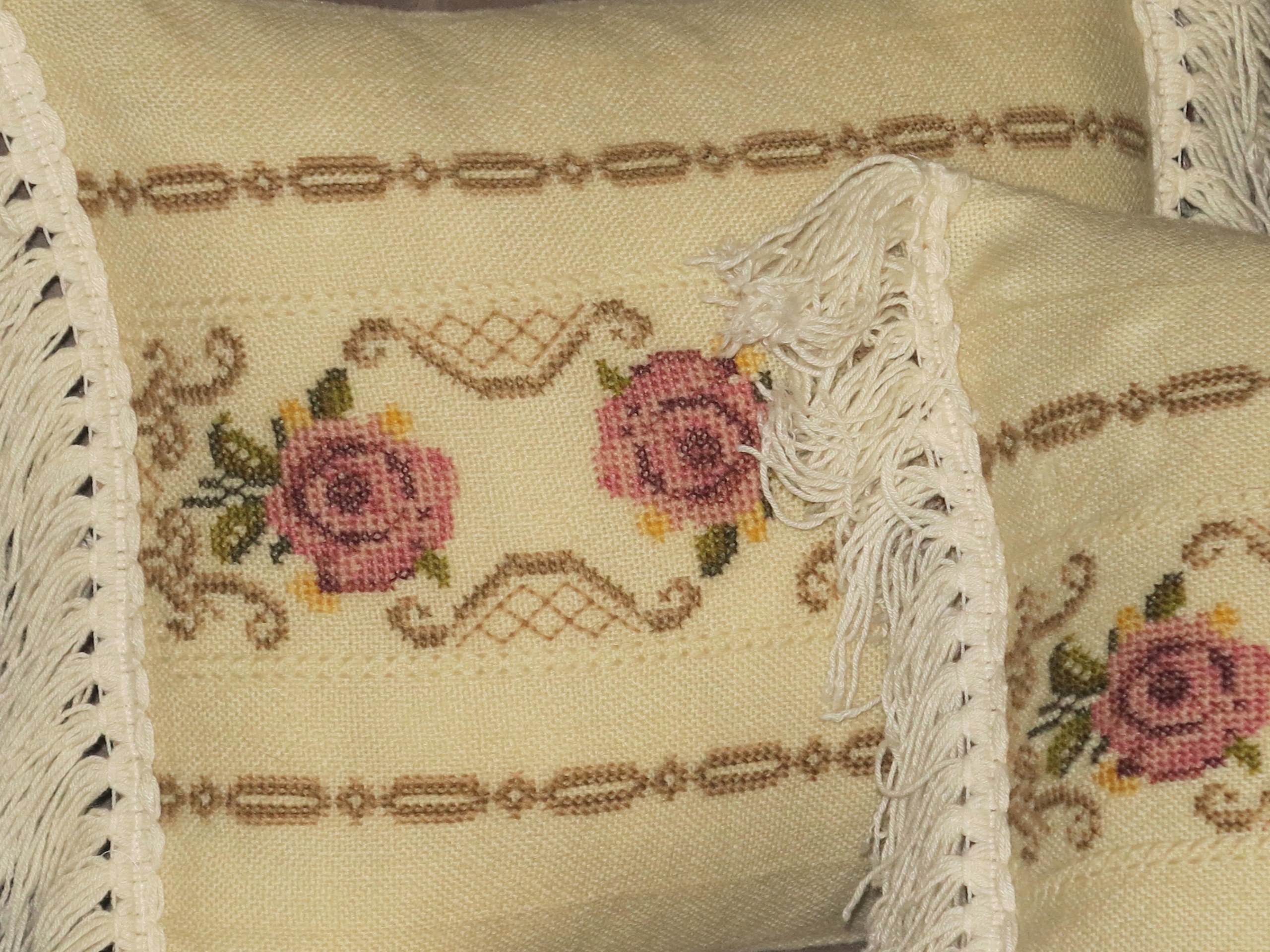 МИЛИХ І ДУЖЕ ДЕКОРАТИВНИХ ПОДУШОК З НАПОВНЮВАЧОМ, ЛИЦЕВА З РУЧНОЮ ВИШИВКОЮ, ДУЖЕ ІНТЕНСИВНА ВИШИВКА ХРЕСТИКОМ. Густа бахрома з боків