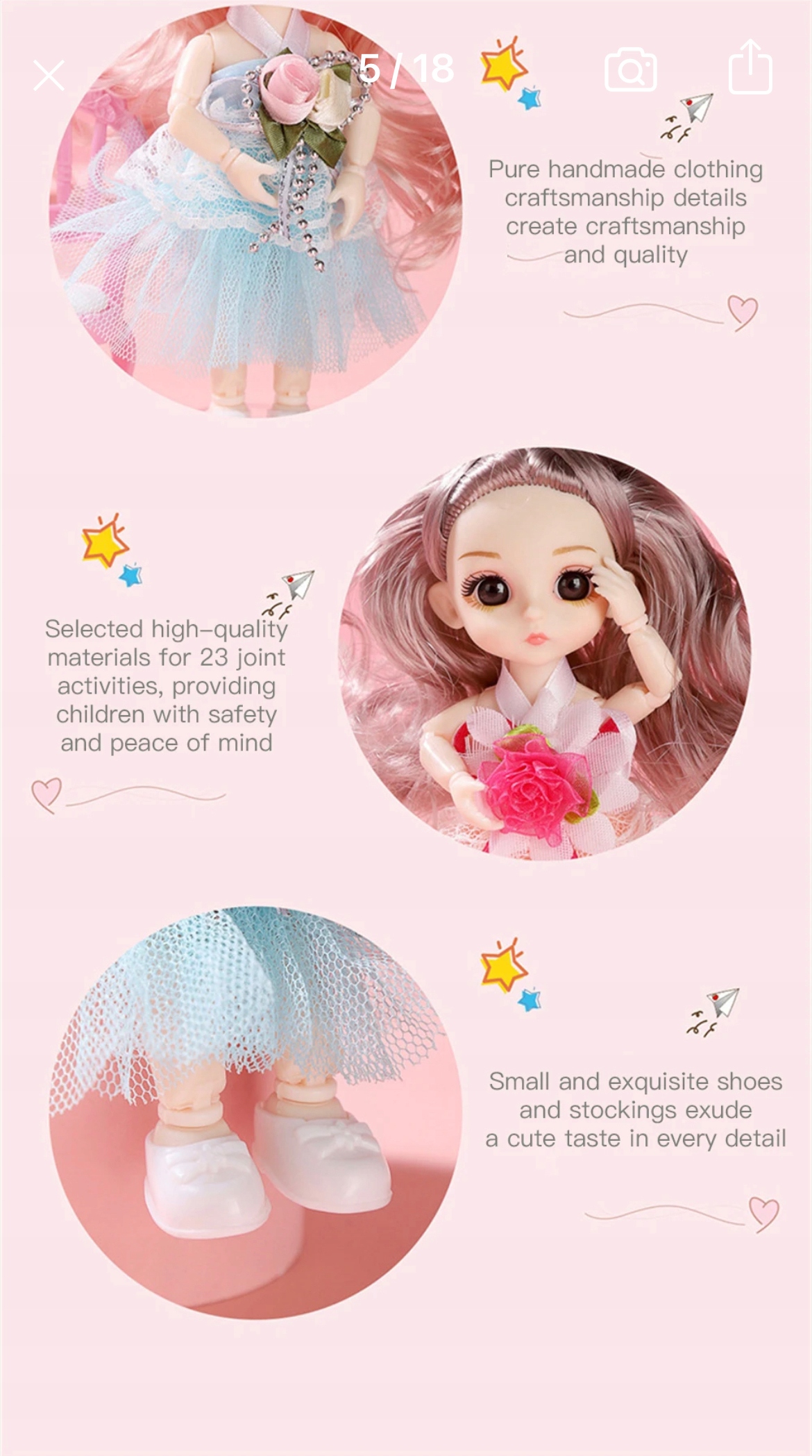 🎀 Рухомі елементи: лялька Вікі має рухливі елементи, такі як руки та ноги, що дозволяє приймати різні пози під час гри. Дитина може легко створювати власні сцени та розповідати історії зі своєю улюбленою лялькою.