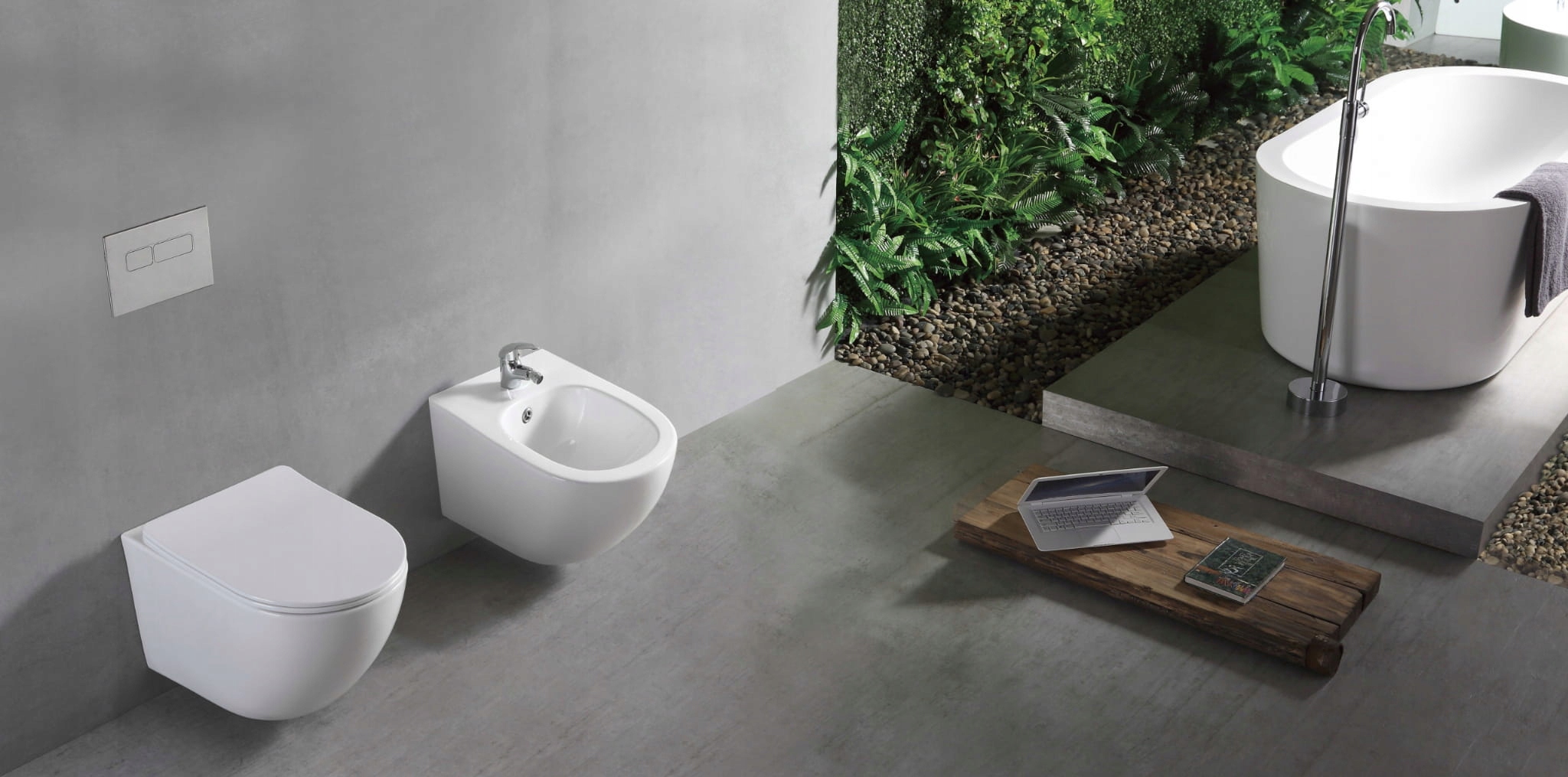 Сформований овальний унітаз і біде. Покриття NANO, невидиме неозброєним оком, забезпечує бездоганну чистоту та антибактеріальний захист усієї поверхні.