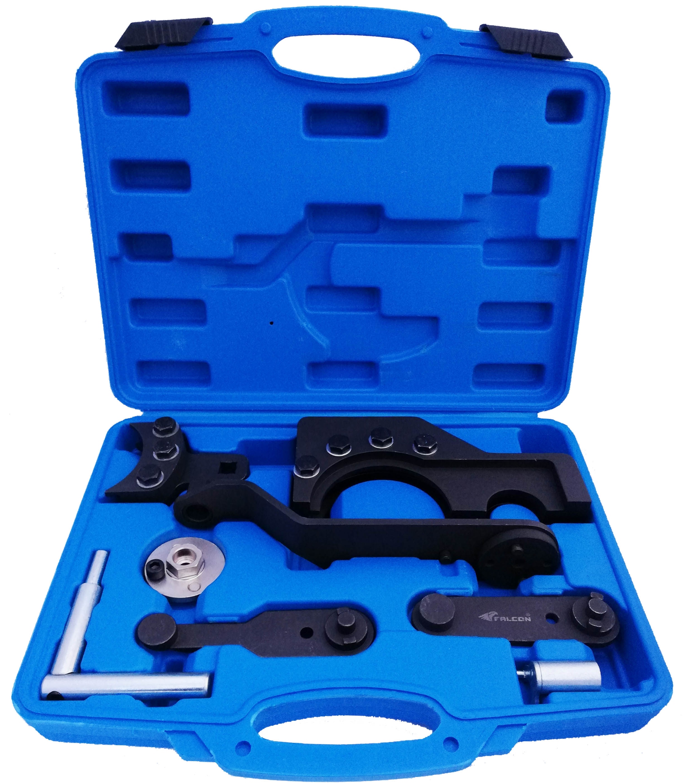 Підходить також для демонтажу та встановлення приводів ГРМ 5-ти 10-циліндрових двигунів випуску після 2003 року. У набір входить спеціальна розетка для обертання колінчастого вала та спеціальний ключ для блокування та натягувач колінчастого вала.