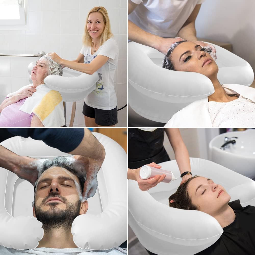 - Переносна ванна для миття волосся має широкий отвір для шиї, вбудовану подушку, зливний шланг, мішок для води та душову насадку, що забезпечує максимальний комфорт і багато місця під головою.