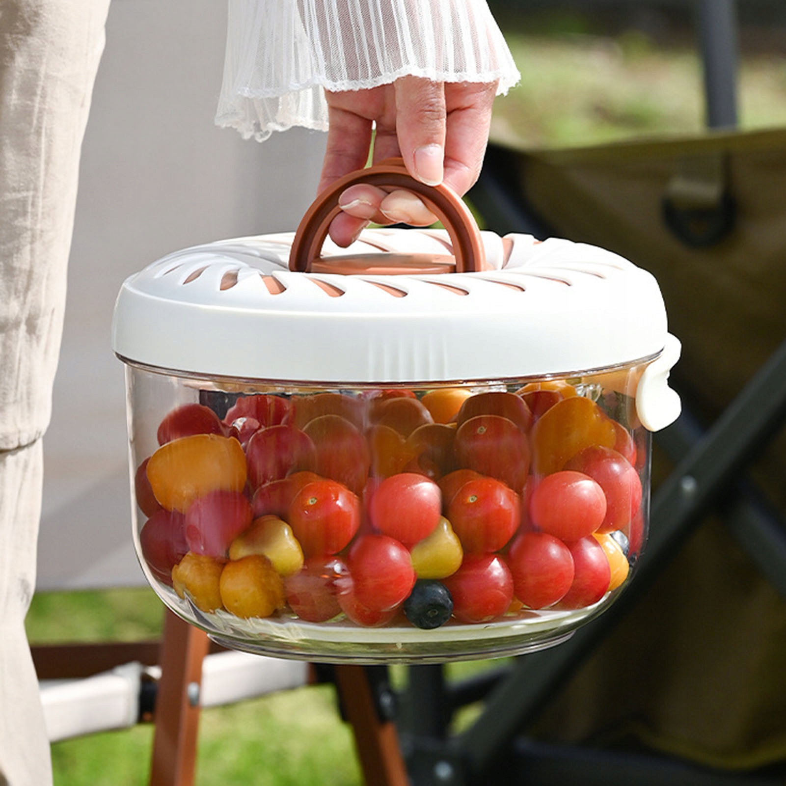 4. Ефективний дренаж: діє як контейнер для ситечка для фруктів з кришкою. Конструкція сітчастого фільтра швидко зливає воду. Використовуйте як чашу для миття фруктів із ситечком для промивання, а потім зберігайте в холодильнику. Зберігає хрусткість фруктів, ідеально підходить для приготування салатів або закусок. Злийте воду з кошика для фруктів, зберігаючи їх свіжими довше.