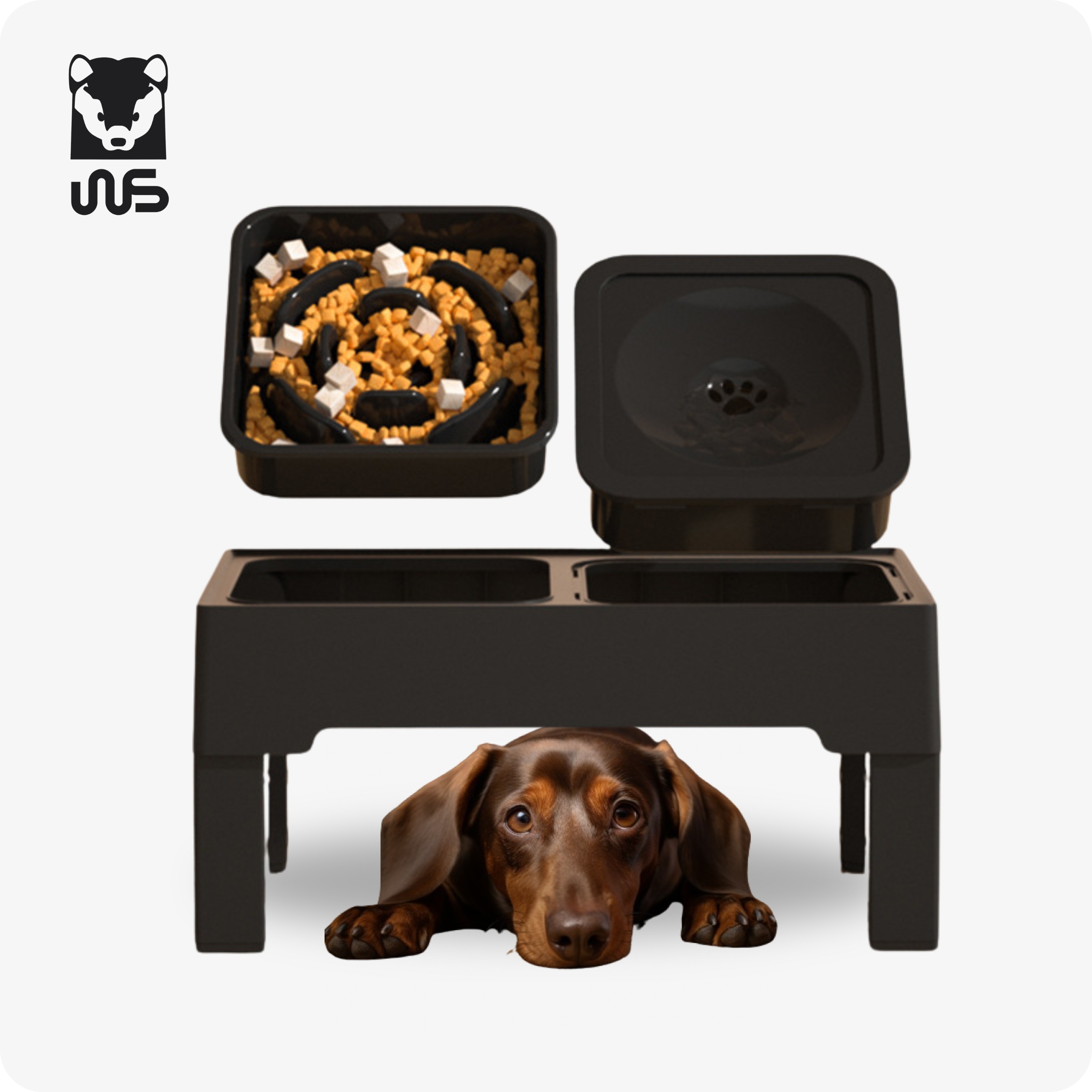 ✦ подвійна чаша для собак на регульованій підставці для бренду WS є ідеальним рішенням для власників, які хочуть забезпечити свою чотирьох -ногу зручність та здоров'я під час їжі.