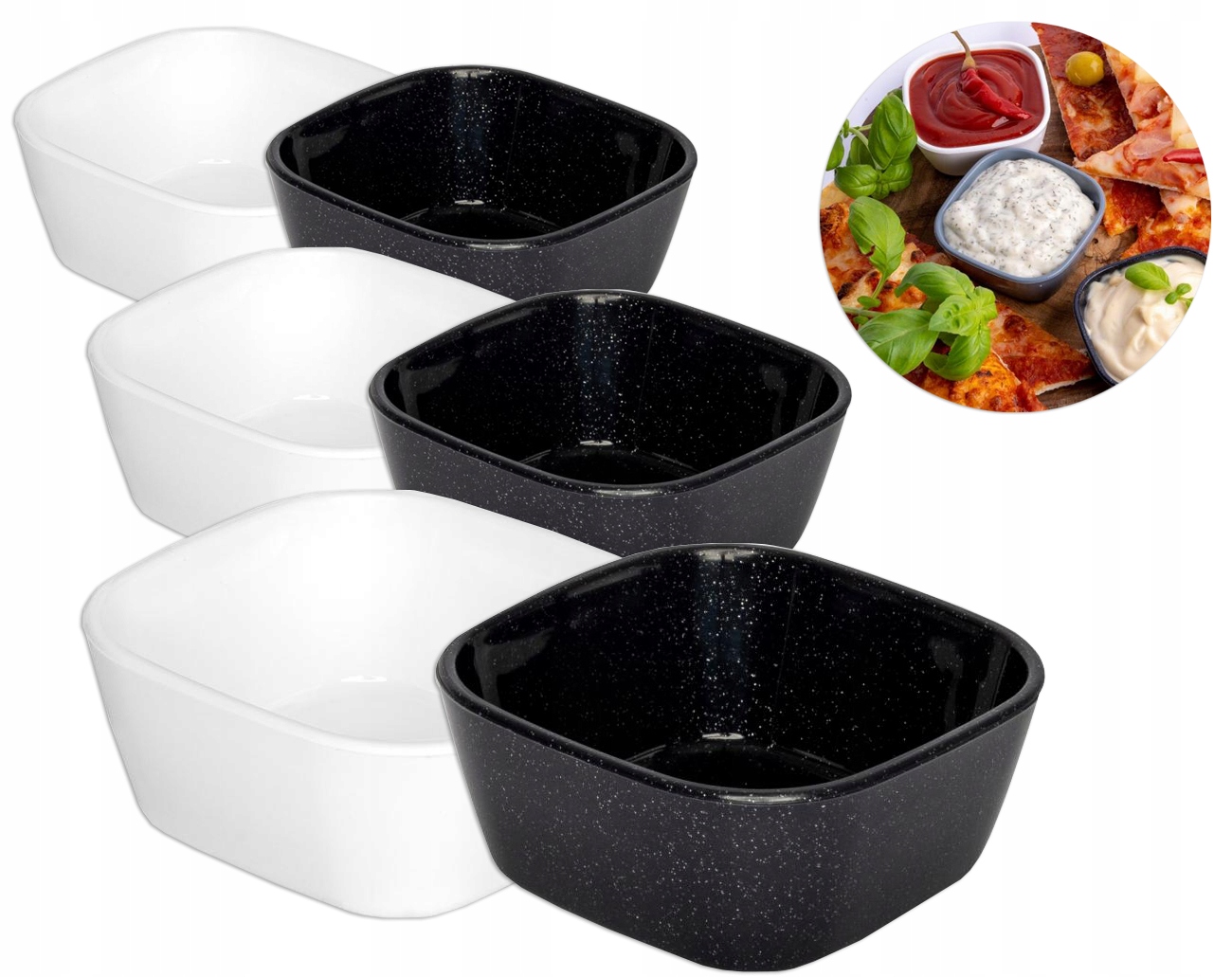 - Шість мисок – повний набір, ідеальний для подачі. і зберігання соусів і соусів