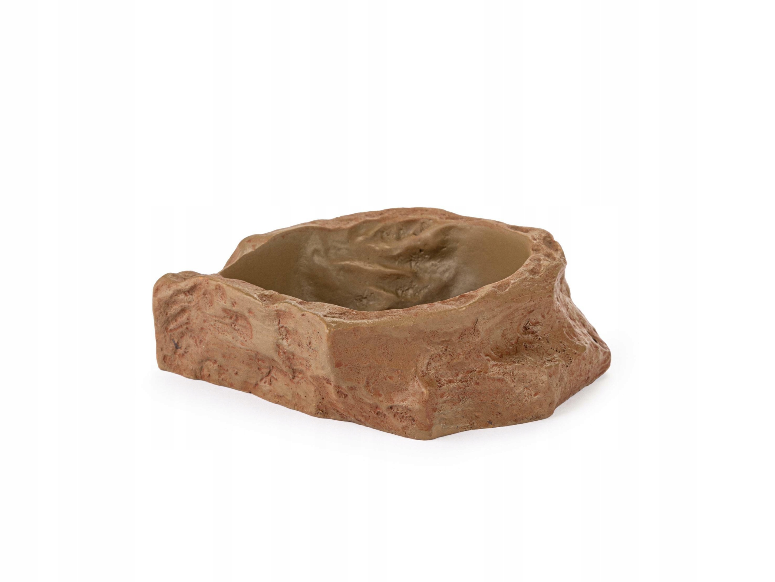 Маленька миска для розміщення в тераріумі. Призначений для ящірок (леопардовий гекон, вогняний сцинк, бородата агама, єменський хамелеон, війчастий гекон та інші види), черепах (грецька черепаха, степова черепаха, жабохвоста черепаха, леопардова черепаха, лісова черепаха), земноводних (агамова жаба, рогата жаба, Dendrobates spp.) і сухопутних равликів. (ахатина, млинцевий равлик). Підходить для згодовування як рослинного корму (сіно, трави та квіти), так і маломобільних (личинки борошнистого хробака, личинки мокриці, личинки мух, равликів) або мертвих (щойно забиті/розморожені гризуни, одноденні курчата) тварин і добавок (сепія, пилок). Природний, неочевидний зовнішній вигляд ідеально вписується в естетику практично кожного тераріуму. Для виготовлення чаші використовувалися лише хімічно нейтральні, нетоксичні матеріали.