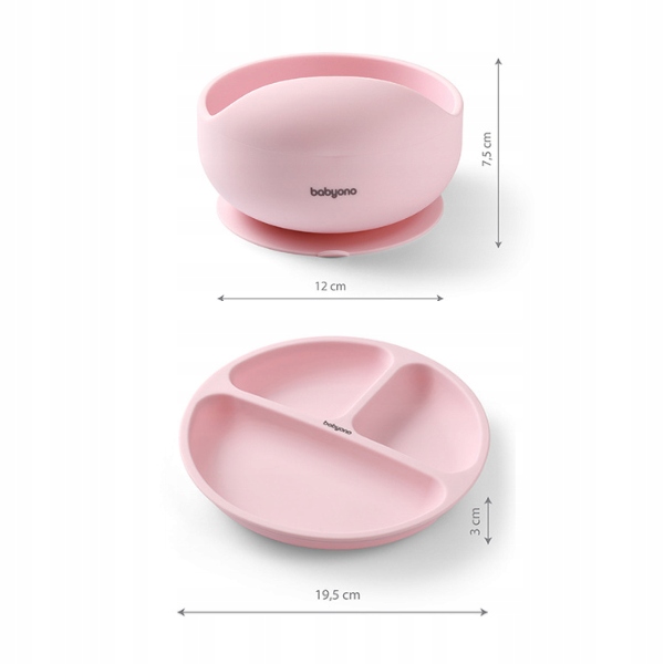 Миска і тарілка набору силіконових суден з присольною чашкою Babyono Pink