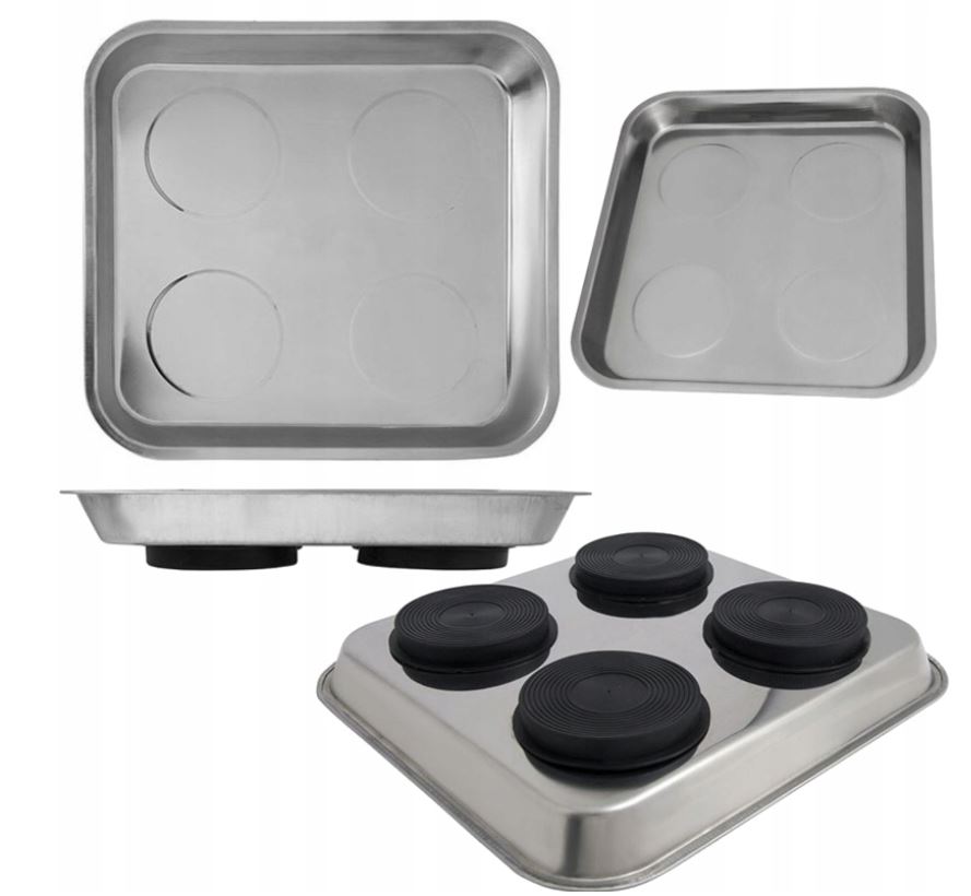Оснащена 4 потужними магнітами, завдяки яким гвинти, кришки та інші елементи майстерні залишаються в одному місці. Магніт дозволяє прикріпити чашу в зручному місці та захищає чашу та зберігаються в ній деталі від падіння та проливання.