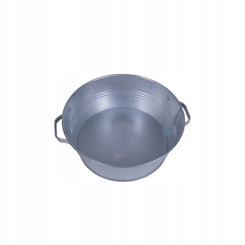 Миска виготовлена з оцинкованого металу з двома ручками для зручності перенесення.