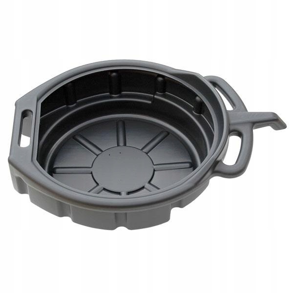 Невелика висота чаші дозволяє легко засунути її під автомобіль. Виготовлена з пластику, стійкого до впливу хімікатів, а його обробка захищає від проливання масла - рідини. Профільований наконечник - воронка - полегшує спорожнення чаші і запобігає розбризкуванню речовини. Він має три ручки для зручного перенесення.