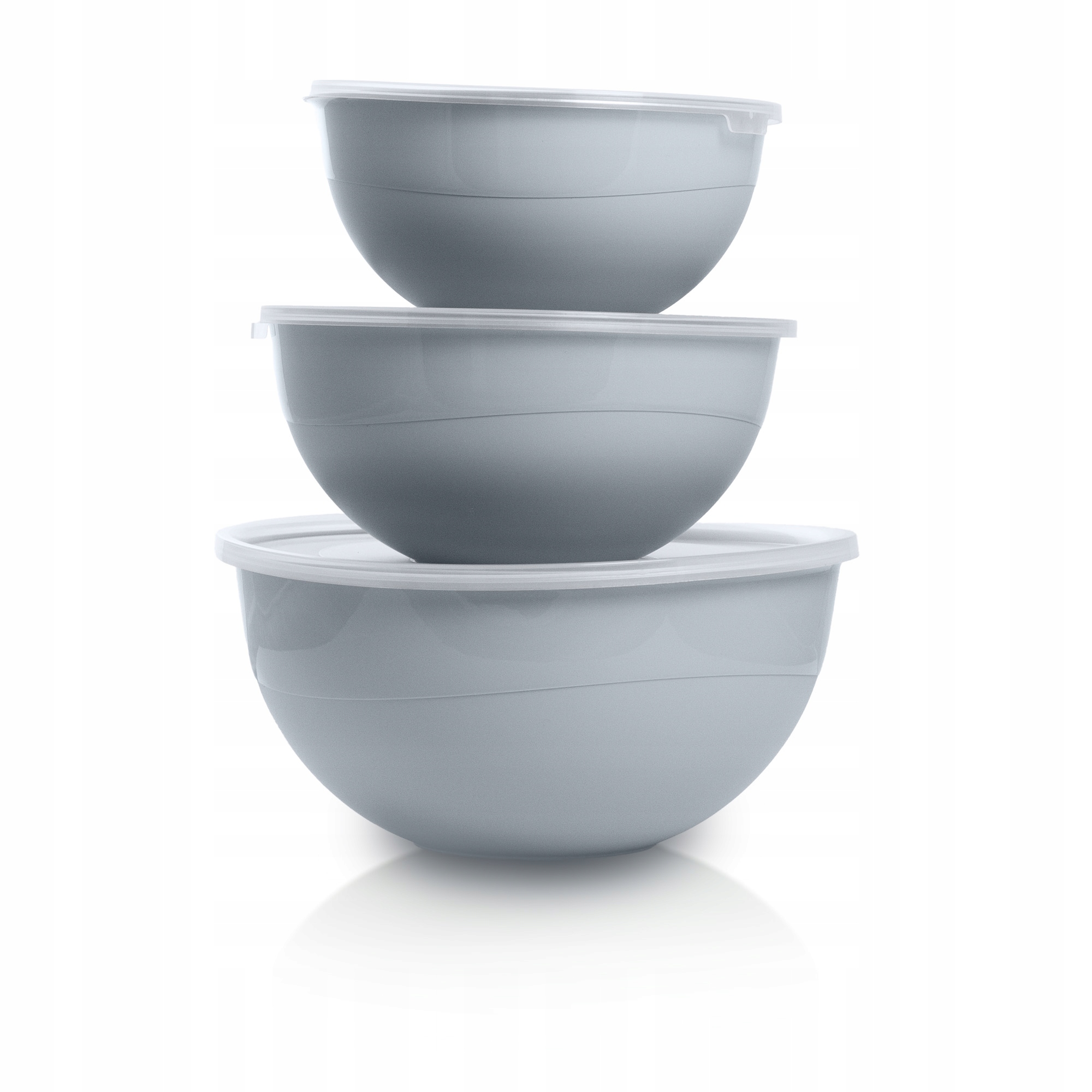ЧАША ПЛАСТИКОВА КУХОННА КРУГЛА З КРИШКОЮ НАБІР ЧАШ 3 ШТ ЧАША СІРА