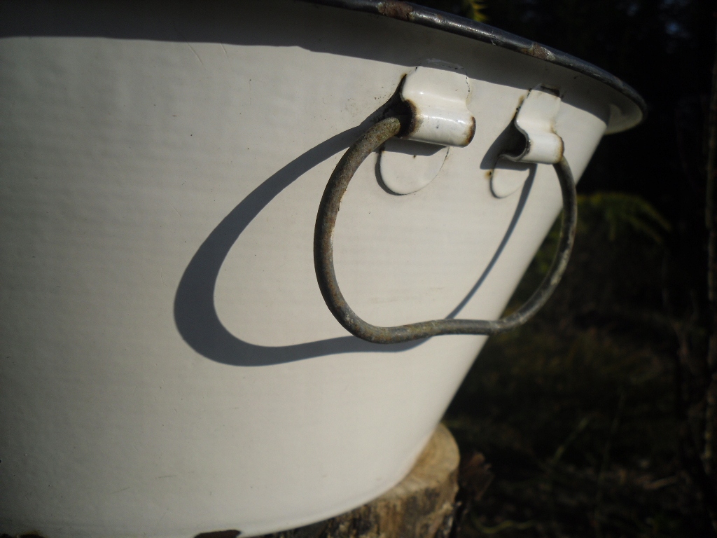 Ласкаво просимо на мій аукціон. На аукціонах я зазвичай пропоную вам предмети з періоду PRL. На цьому аукціоні я пропоную оригінальну стару високу миску з рухомими ручками для легкого перенесення. Підписана миска. Білий, чорний край. Чаша через її вік має нормальні ознаки використання у вигляді невеликих подряпин та делікатних потертостей, знебарвлення та емалі. У мисці внизу є невеликий отвір, миска не щільна. /Див. Фотографії/