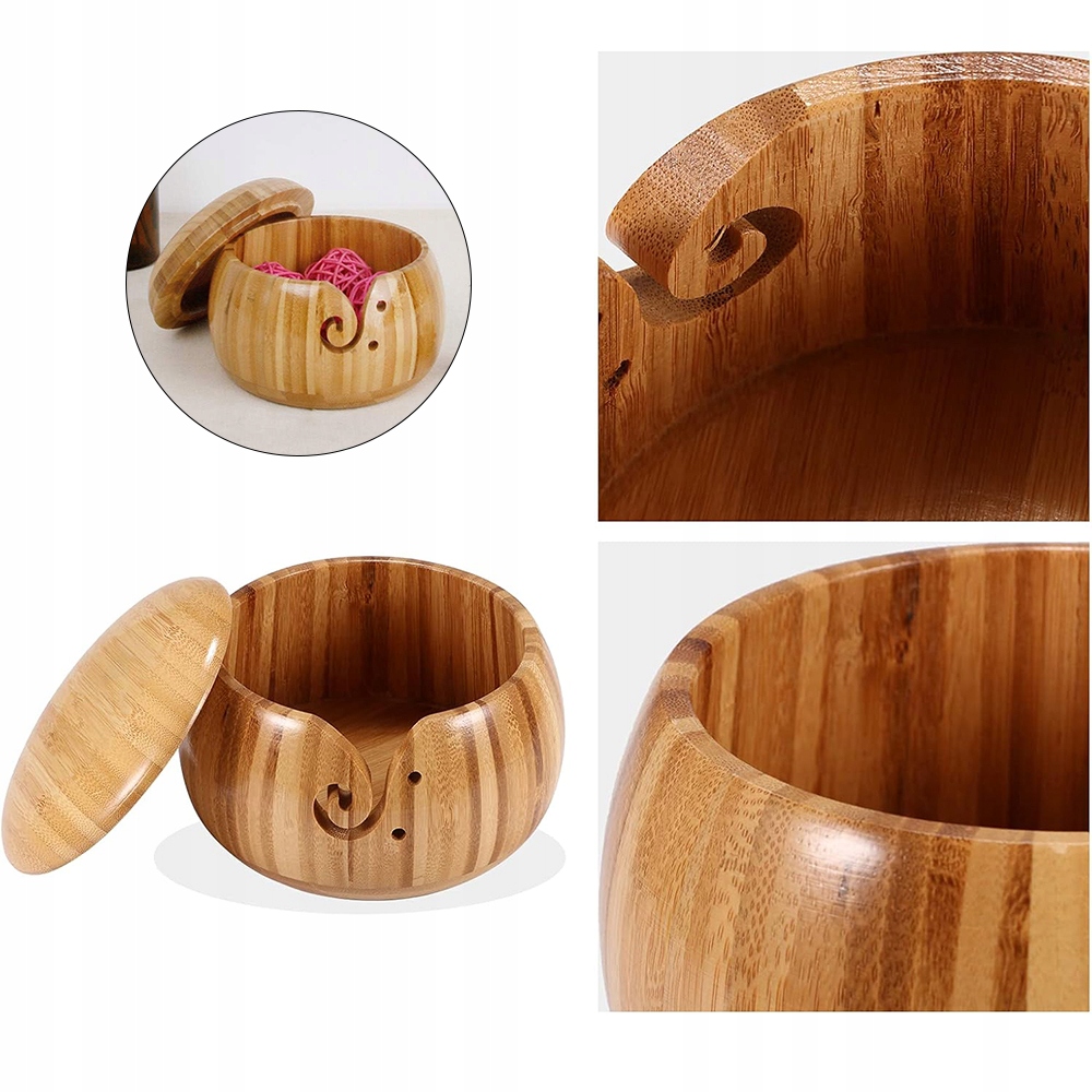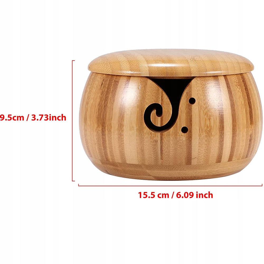 Миска ручної роботи виготовлена з натурального бамбука, що гарантує її міцність і стійкість до розтріскування, забезпечуючи тривалий термін служби. Гладка поверхня забезпечує плавне та рівномірне протягування пряжі крізь отвір без будь-яких застрягань.