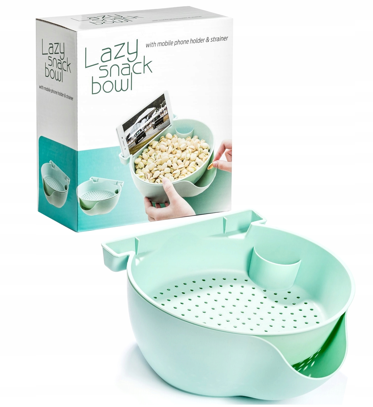 Чи може миска бути розумною? Виявляється, можна :) Супер практичне обладнання для всіх, хто любить перекусити під час перегляду фільмів, прослуховування музики чи вболівальників. Наша миска розумна, тому що складається з двох незалежних частин. У верхній лоток із ситечком ви можете помістити різноманітні закуски, такі як арахіс, фісташки, насіння соняшнику, а також здорові, щойно вимиті, такі як помідори черрі, виноград, полуницю з хвостиками, вишні, варену квасолю та все, що вам подобається. , і вони мирно стечуть.на нижню підставку, де також є місце для насіння, стеблин, шкаралупи тощо.Миска також розумна, оскільки ви можете помістити свій смартфон у спеціальну кишеню та зручно дивитися улюблені програми, серіали або слухати музику.