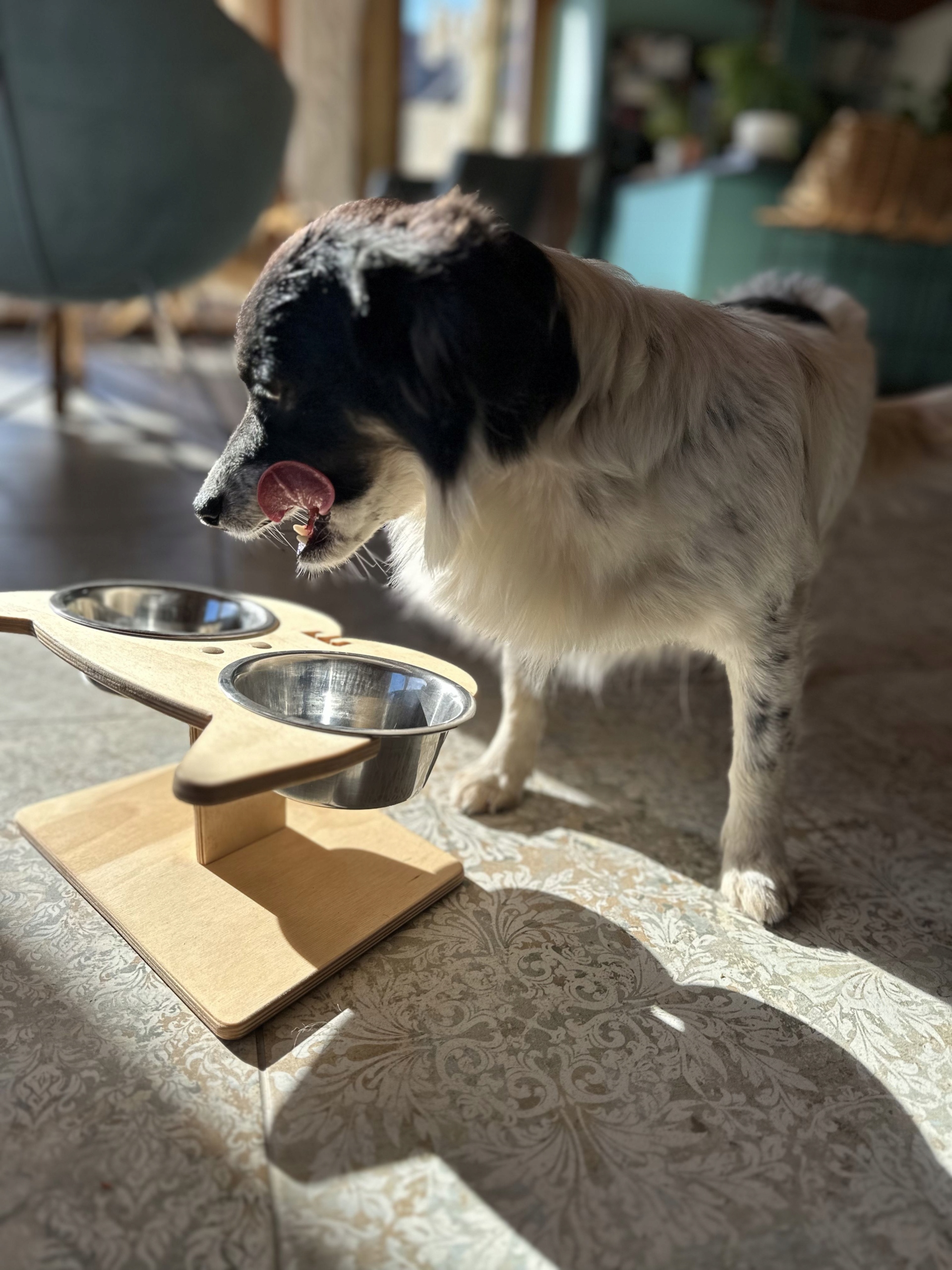 Регульована вільна миска для собак у формі нещастя собаки - ретро - виготовлена повністю з дерева - модельних пирогів + чаші