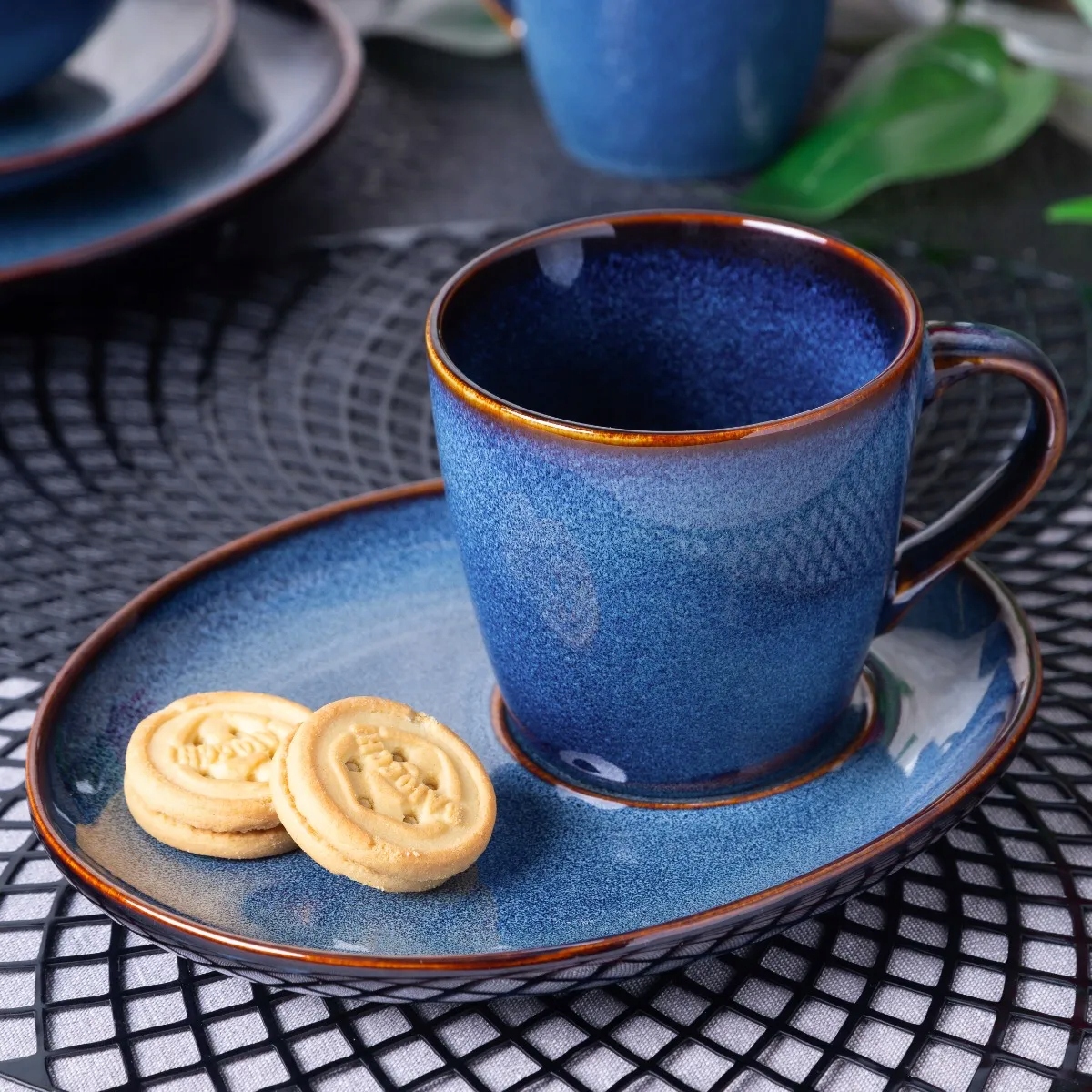 ⭐ Елегантний дизайн - глибокий темно-синій з тонкими переходами кольорів і коричневим краєм надає посуду унікальний, стильний вигляд.