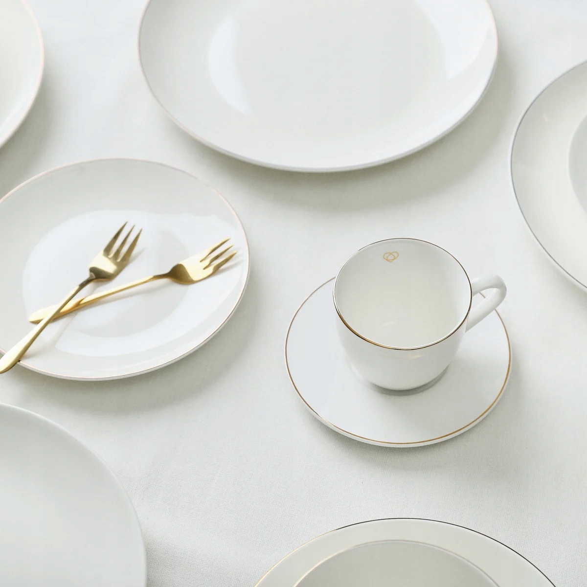 Маленька чашка AURO об'ємом 0,21л і висотою 7 см поєднується з основою діаметром 15 см. Він виготовлений з ніжної порцеляни крем-екрю, єдиною прикрасою якої є золота смужка, розміщена по краю обох елементів.
