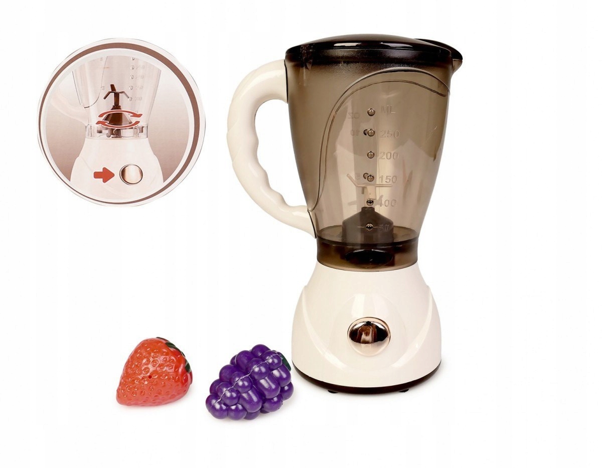 Блендер оснащений інтерактивними функціями, які при натисканні кнопки починають обертати «леза». Це змушує вміст чашки рухатися, що додатково залучає дітей до гри та розвиває їхні ручні навички. У набір також входять дві фігурки фруктів, які роблять гру привабливішою та заохочують до творчості.