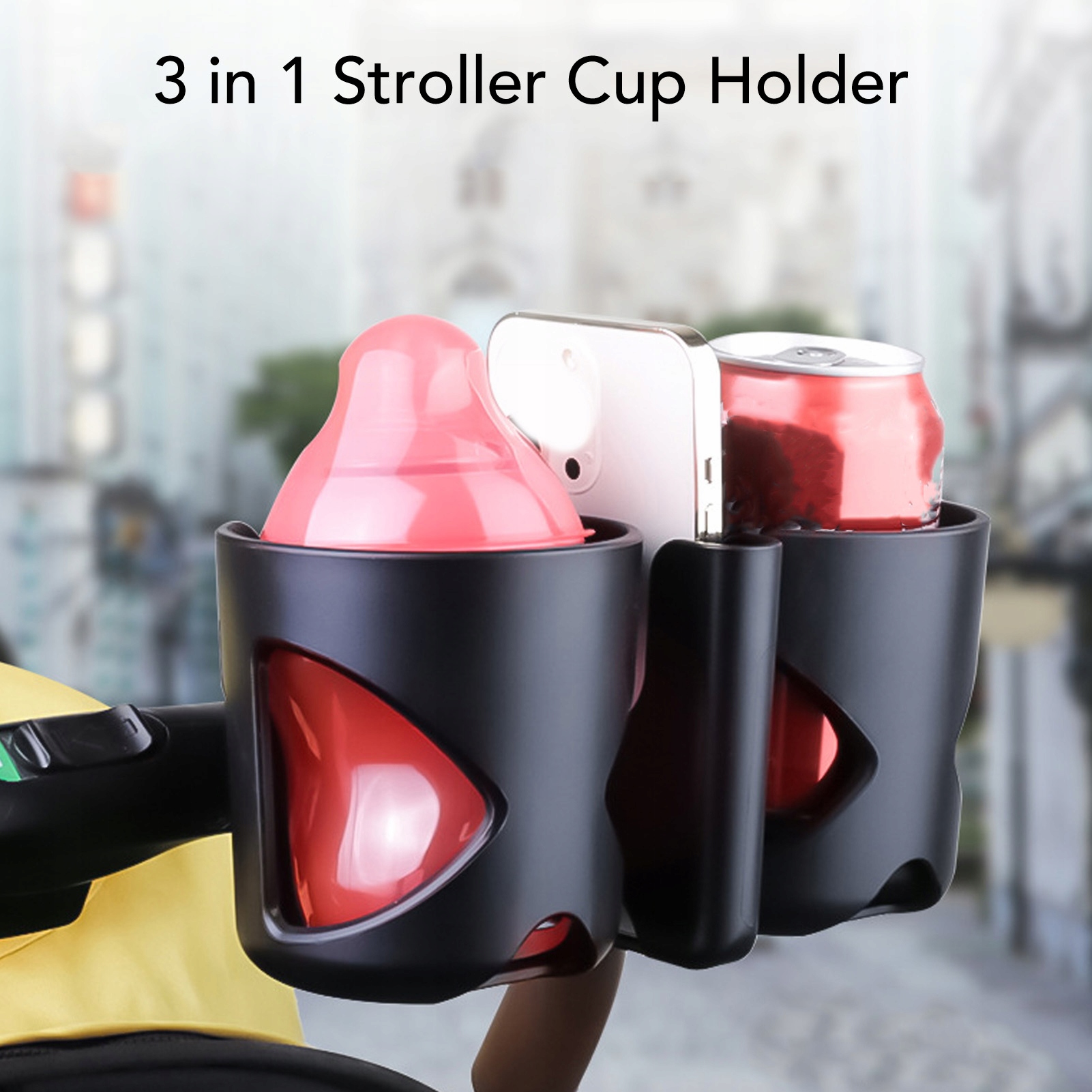 Функція: 1. Все в одному проекті: Цей власник ручки для коляски - це універсальний аксесуар, який дозволяє розмістити телефон, пляшку для дитини та водна кухоль в одній зручній ручці, завдяки CZ це потрібно для батьків на ходу.