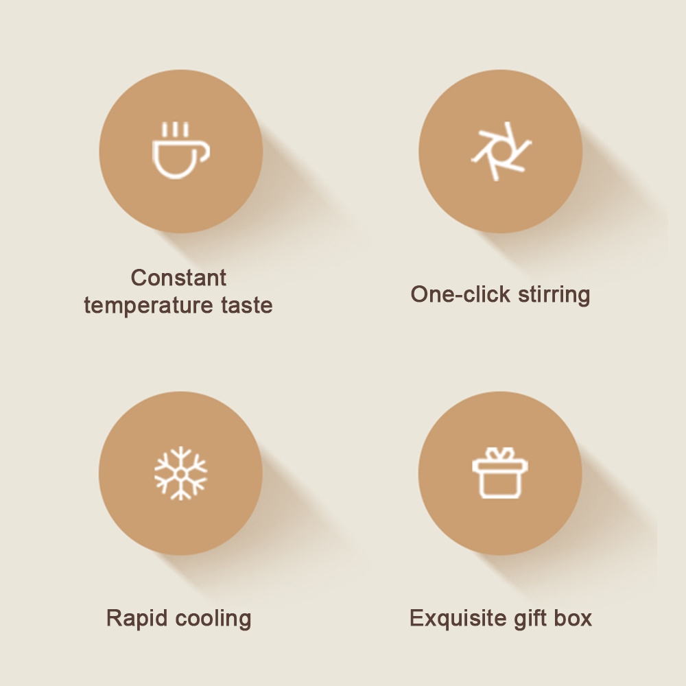 - Безпечний і тихий: Чашка для кави потужністю 10 Вт, яка самостійно перемішує, з низьким енергоспоживанням і низьким рівнем шуму, не травмує руки та не заважає працювати та відновлюватися.