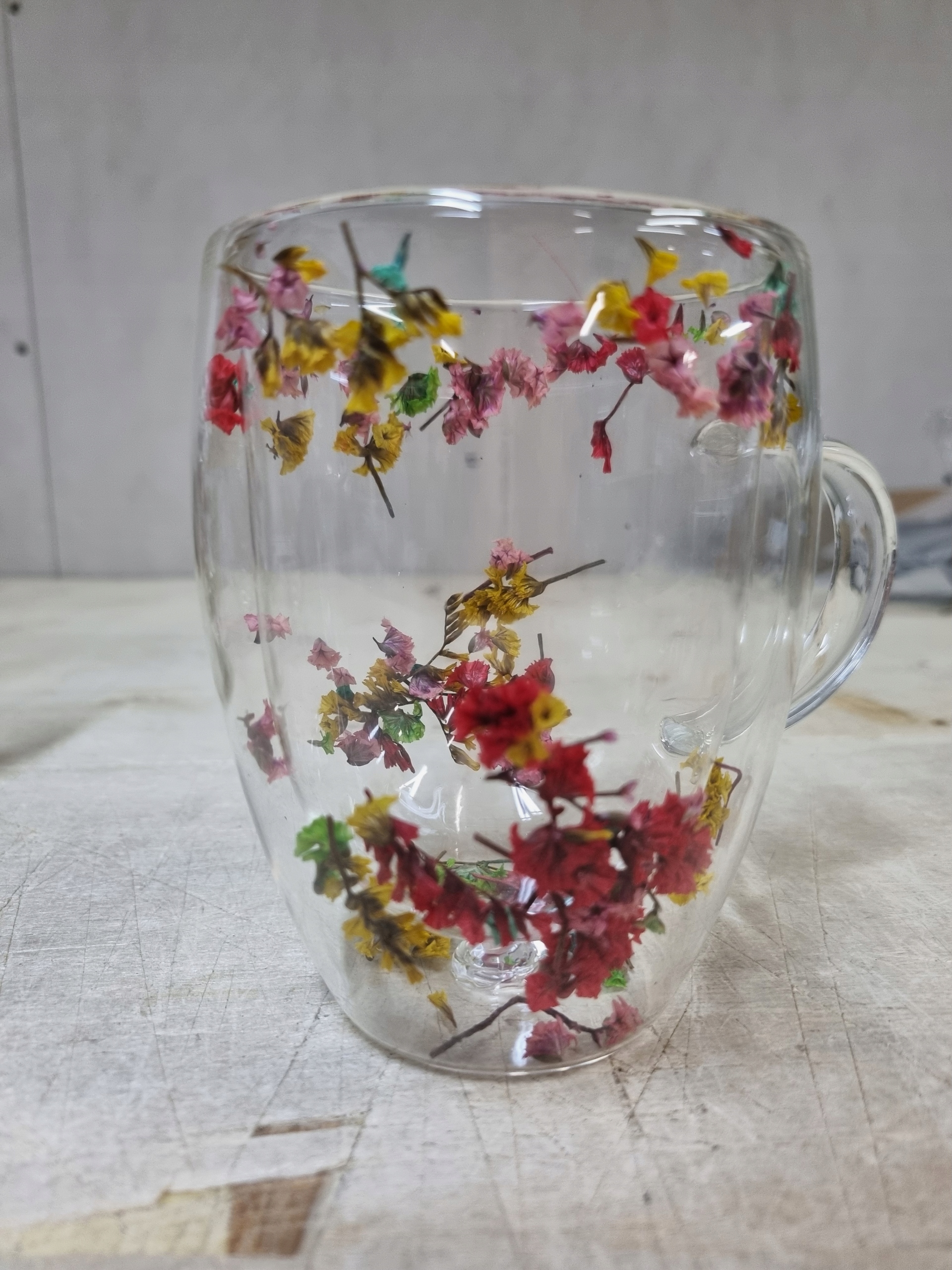 Чашка для кави з подвійною дном із сушеними червоно-жовтими квітами