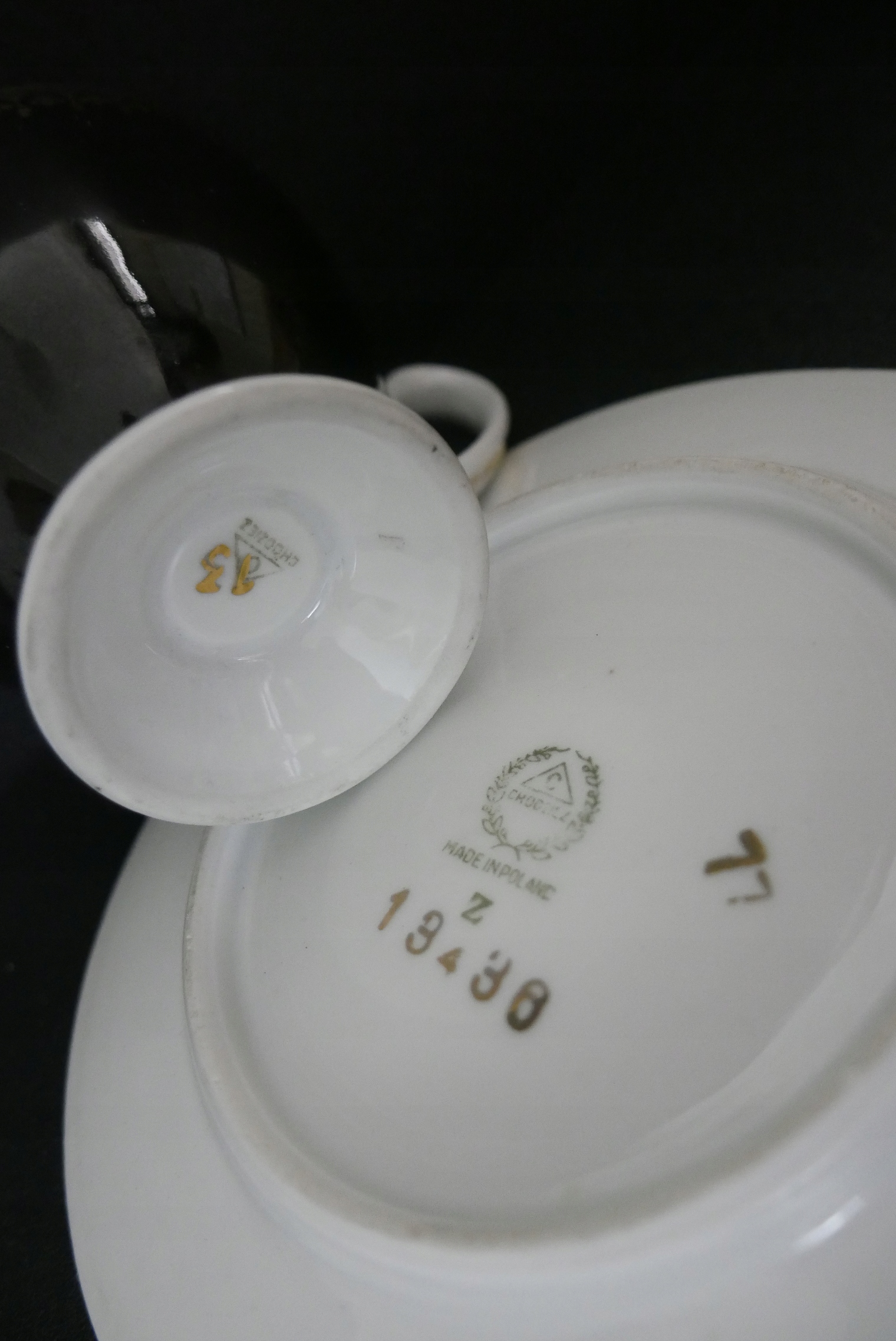 Чашка з блюдцем, Ходзеж, 2 різні візерунки тарілки та блюдця