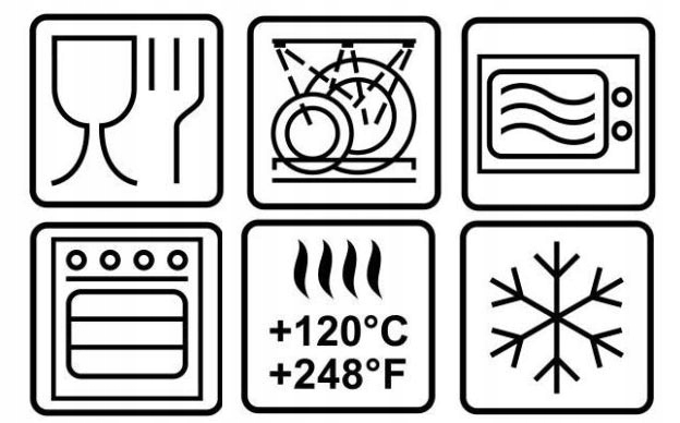 Увага! Знявши кухоль із низької або високої температури, залиште її при кімнатній температурі, щоб вона повільно нагрілася або охолола. Різкі зміни температури чашки можуть призвести до її тріщини.
