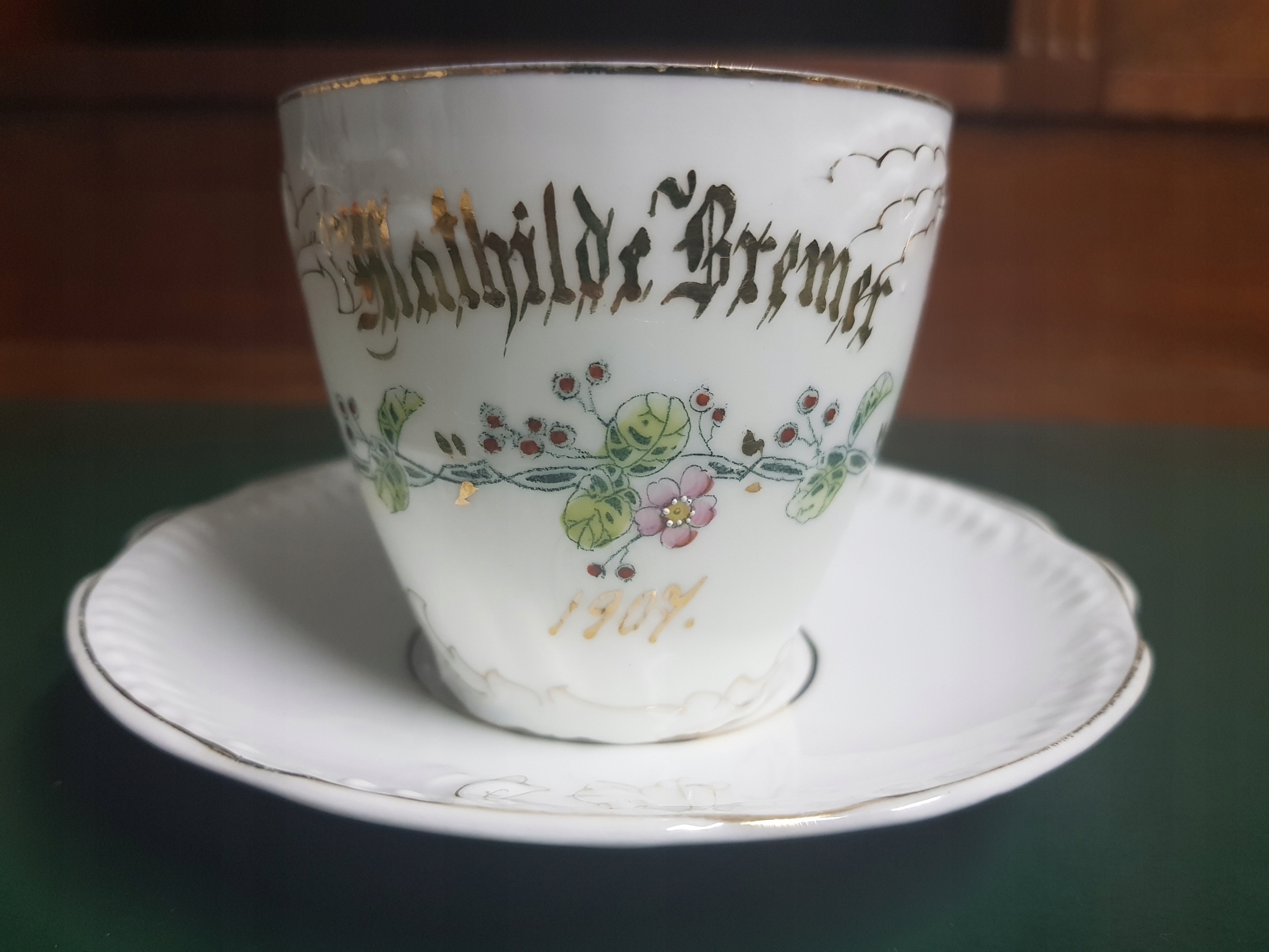 Предметом аукціону є чашка в стилі модерн, присвячена Матільді Бремер 1907 року.