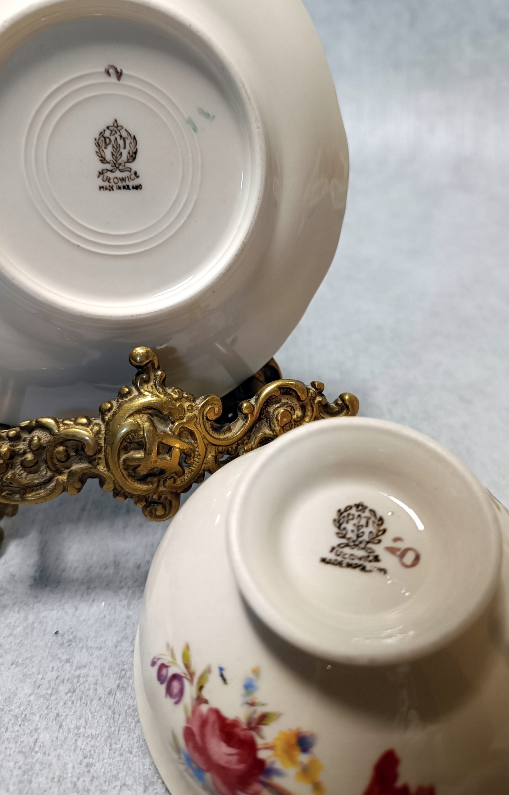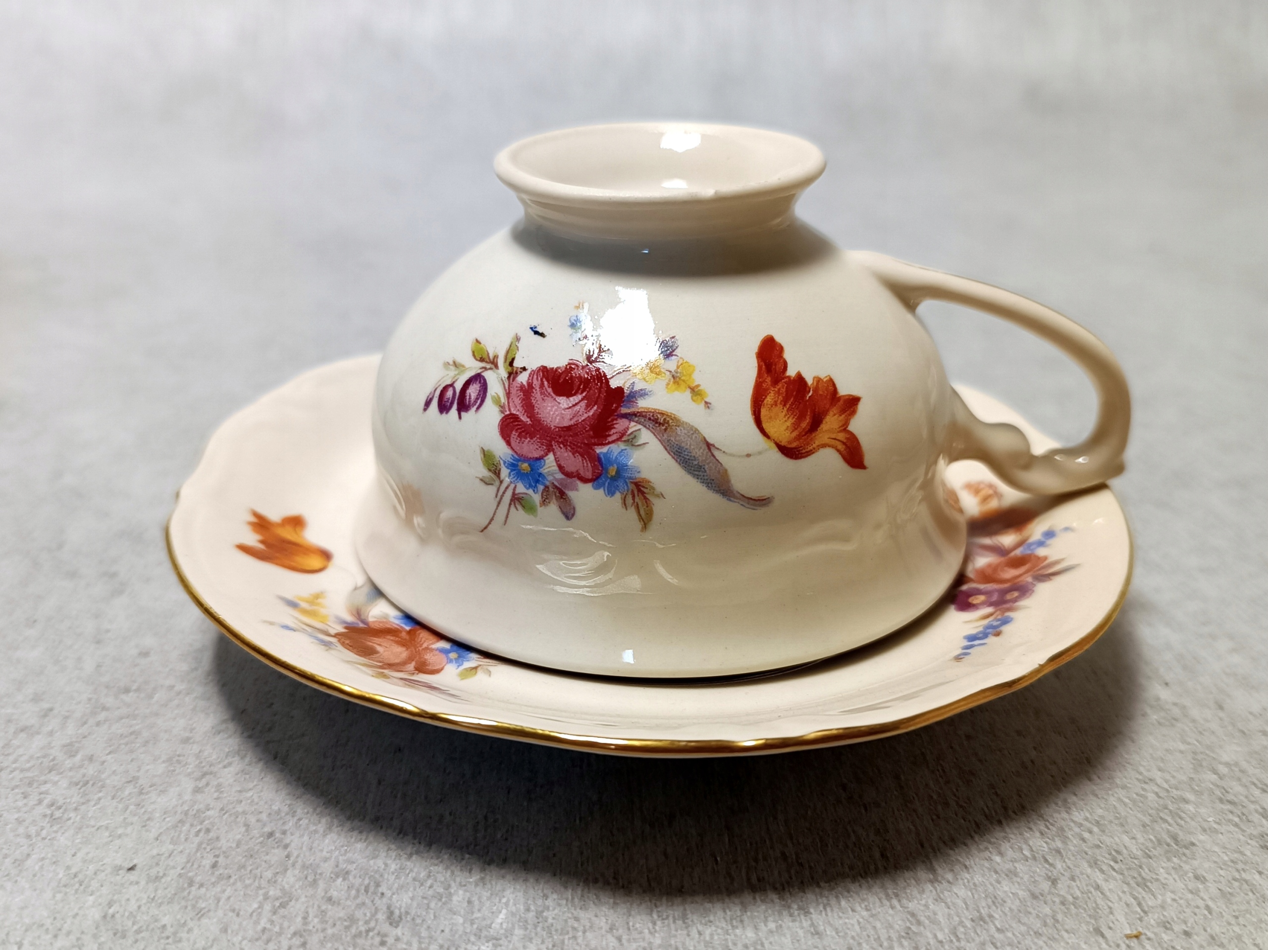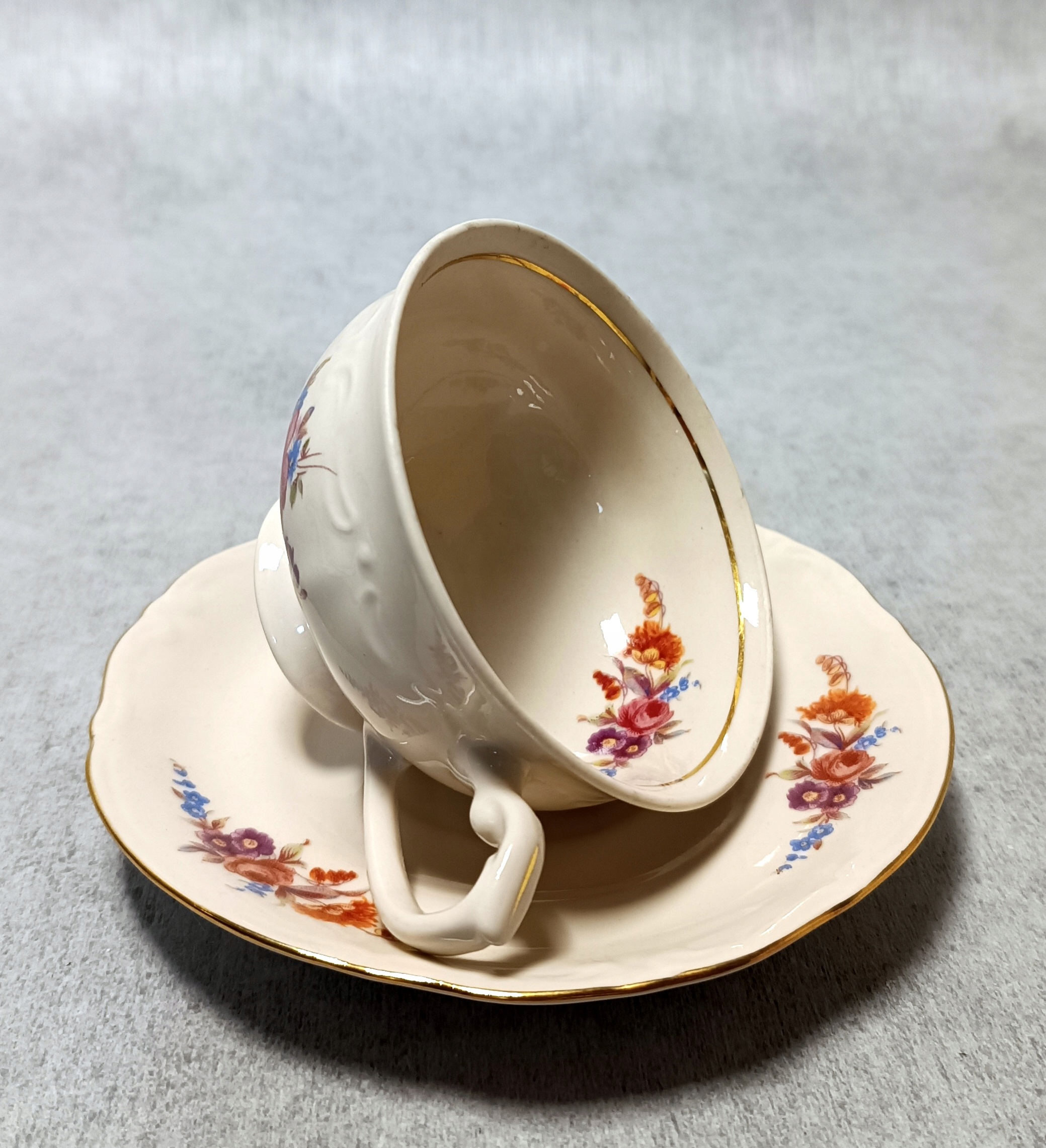 Чашка TUŁOWICE Duet, прикрашена квітами, рельєфами та сусальним золотом