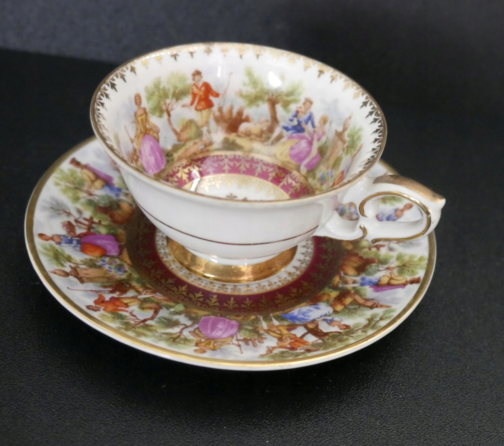 біла порцеляна, світлий, позолочений обідок, золоті аплікації
