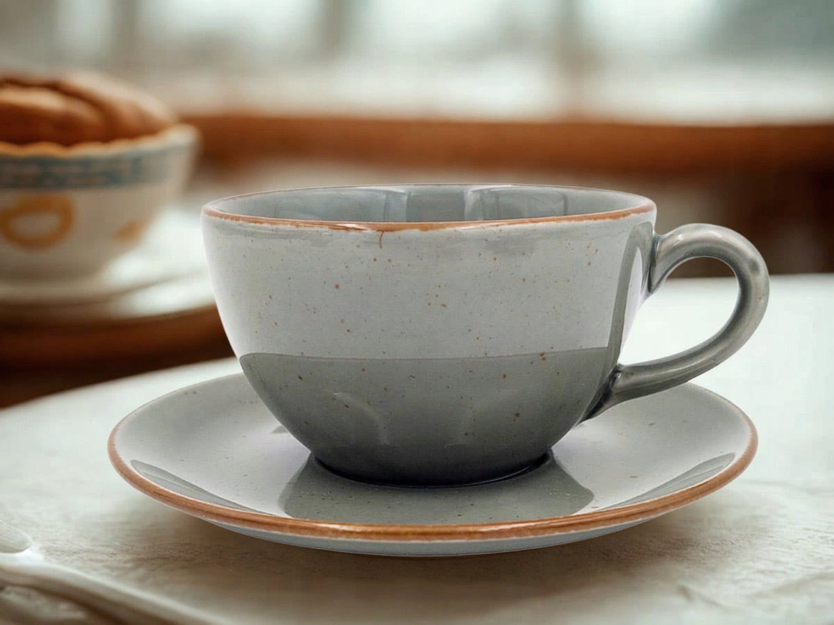 Чашка з блюдцем з високоякісної порцеляни. Сірий колір і оздоблення вручну - покриті шаром якісної глазурі, створюють елегантний блиск і додають шарму. Якість виконання дозволяє інтенсивно використовувати в закладах громадського харчування.
