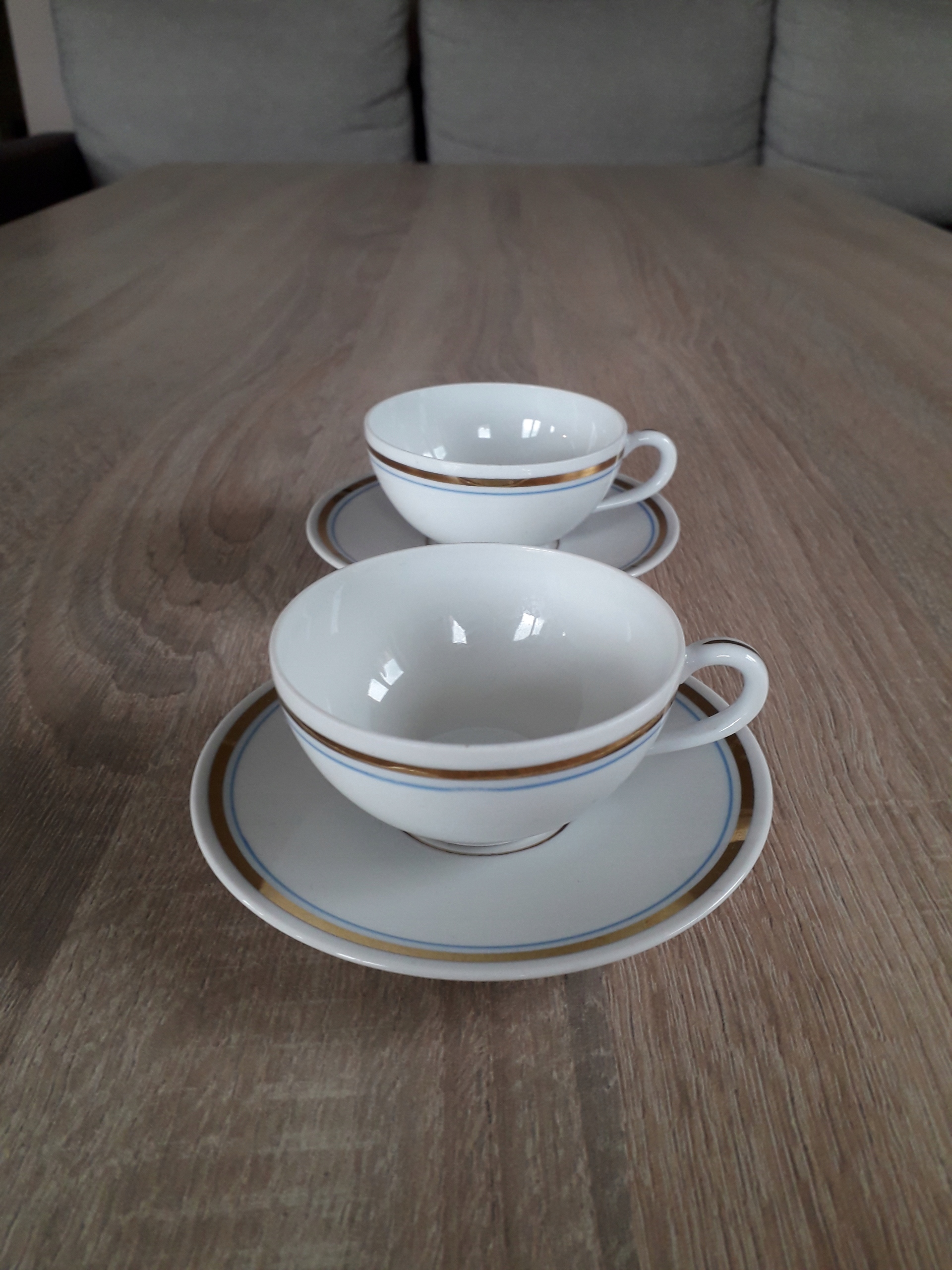 Чашка KAESTNER SAXONIA з блюдцем, діаметр чашки 7,2 см, основа 3 см, висота 3,8 см, об’єм 0,08 л, вага 0,04 кг, діаметр блюдця 11 см, вага 0,06 кг. Обидва комплекти в дуже хорошому стані.