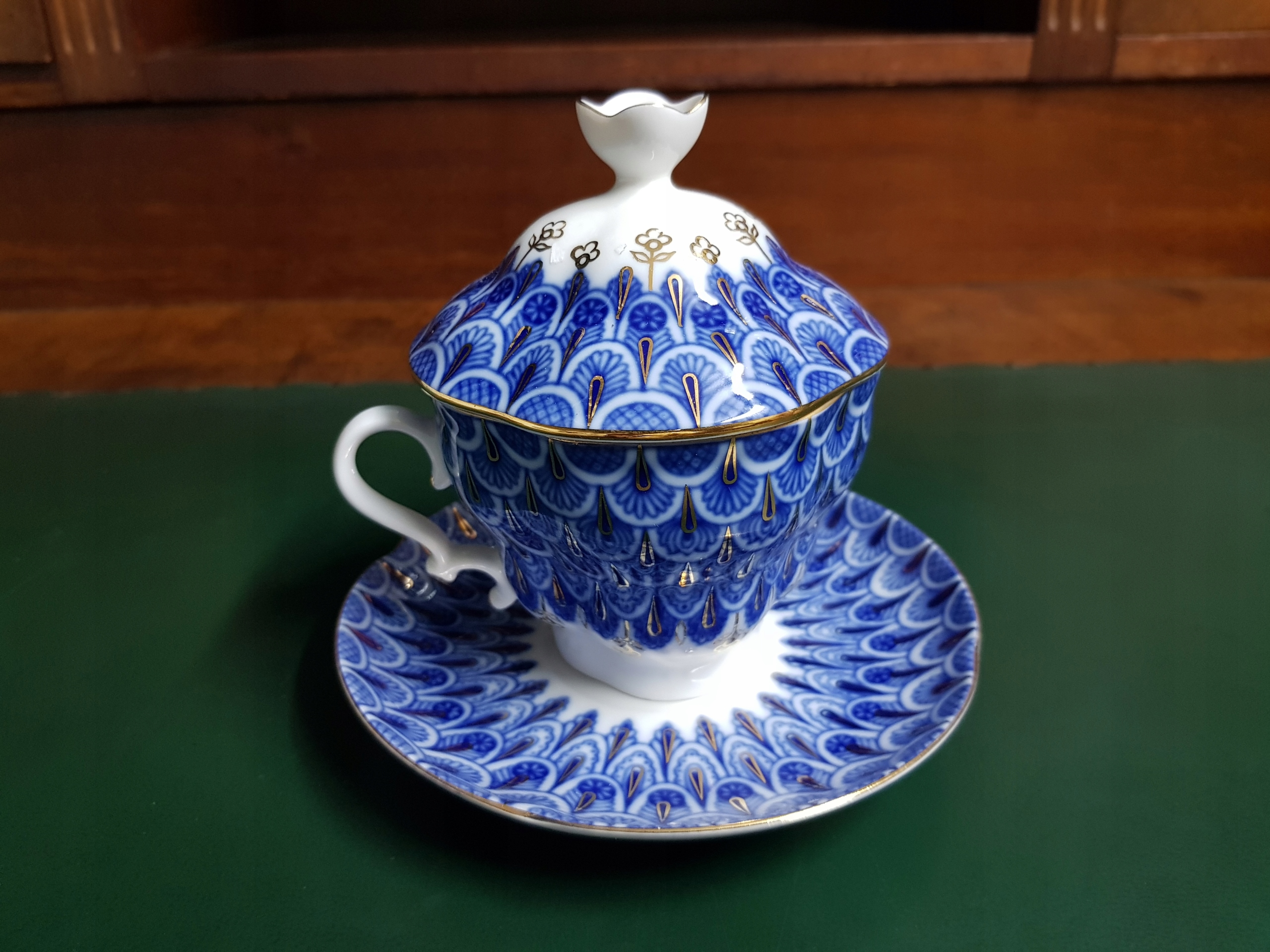 Предметом аукціону є чашка з блюдцем Ломоносова з кришкою.