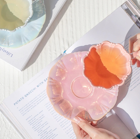 Колір може змінюватися в залежності від налаштувань монітора. Важко отримати реалістичний відтінок на фотографіях через перламутрове сяйво чашки.