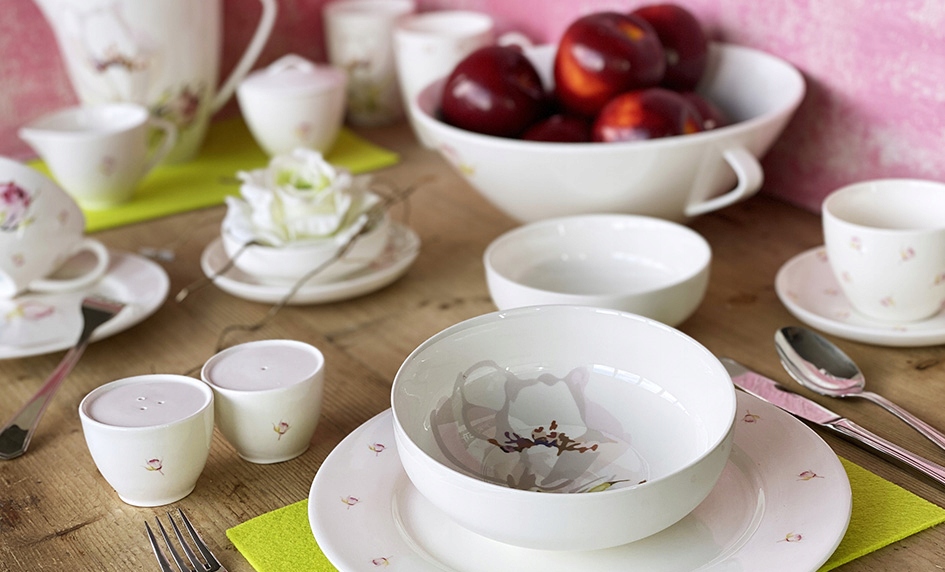 Прикраса трояндової квітки та маленьких троянд разом із рожевим та зеленим кольором створює романтичну та заспокійливу атмосферу, яка стане ідеальним доповненням до вашого столу та інтер’єру. Колекція Thine Poetica тут, щоб принести красу природи та унікальний чеський шарм. 4 Ваші столи будуть прикрашені найбільш ніжною квітковою елегантністю, а ваші моменти, проведені з родиною та друзями, будуть наповнені романтикою та затишками.