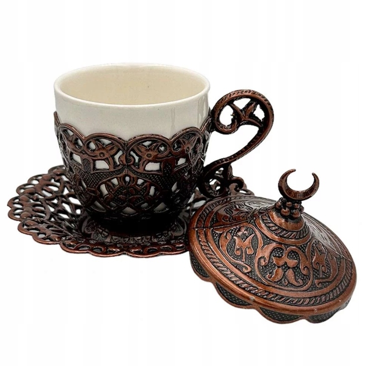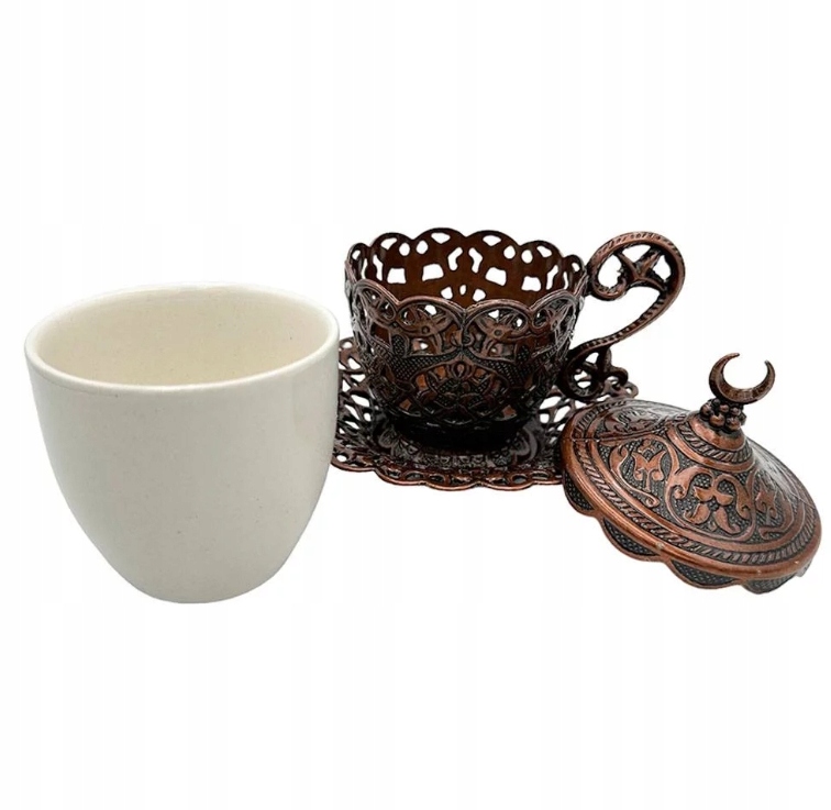 чашка з блюдцею для турецької кави. Це унікальна модель в османському стилі, прикрашеному турецькими мотивами. Чашка складається з чотирьох частин: блюдце, кошик. Вставка кришки та порцеляни.